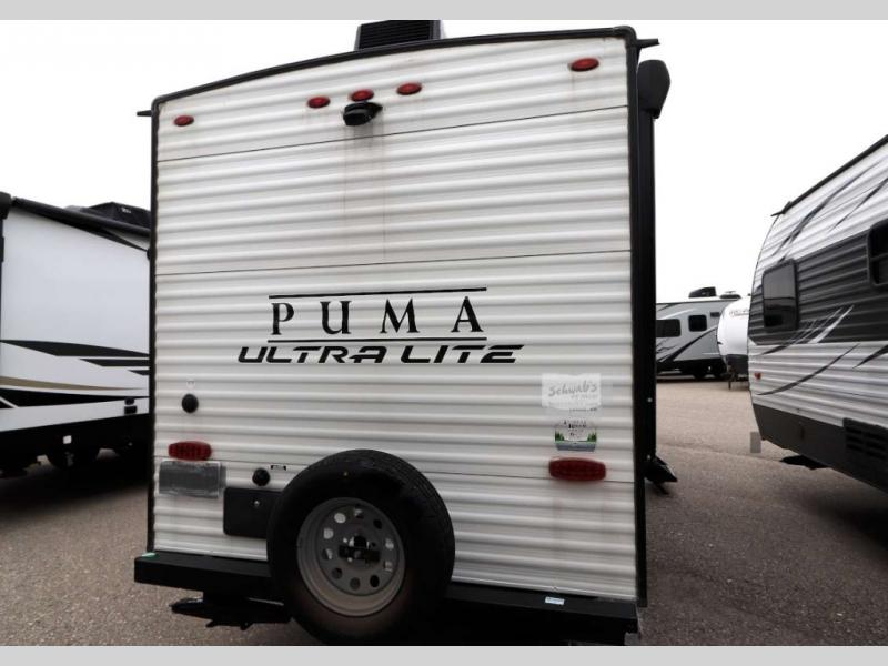 With any Puma Ultra Lite travel trailer or toy hauler by Palomino, you will experience a lighter weight RV that is eco-friendly and offers great fuel efficiency with maximum towability with your own crossover vehicle and smaller SUV. The exterior offers an AlphaPly roofing membrane and a Darco wrapped underbelly for durability and years of use, a power tongue jack for easy setup, a Super Lube axle, a front diamond plate to protect against road debris, front and rear stabilizer jacks, plus solar and WiFi prep. Inside, there is LED ceiling lights, Beauflor linoleum for durability and easy cleanup, a decorative kitchen backsplash, contemporary hardware, light and bath fixtures for style, a divided silverware drawer for organization, and a 78" interior height.
