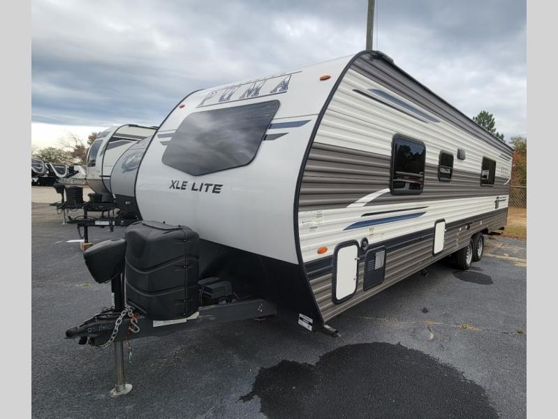 Each one of these Palomino Puma XLE Lite travel trailers and travel trailer toy haulers come with a popular selection of user-friendly amenities! Their sturdy construction consists of a solid I-beam powder coated frame, super lube axles, a Darco wrapped underbelly, and an AlphaPly roofing membrane, plus a smooth, radius front metal with diamond plate to protect your unit on the road. The tinted safety glass windows come with night shades for added privacy. The beautiful interiors have Beauflor linoleum, satin nickel hardware, a decorative kitchen backsplash, and a spice rack to make seasoning your foods easier. With a 13,500 BTU A/C unit, you will stay cool even on the hottest summer days. Come find the perfect model for you today!