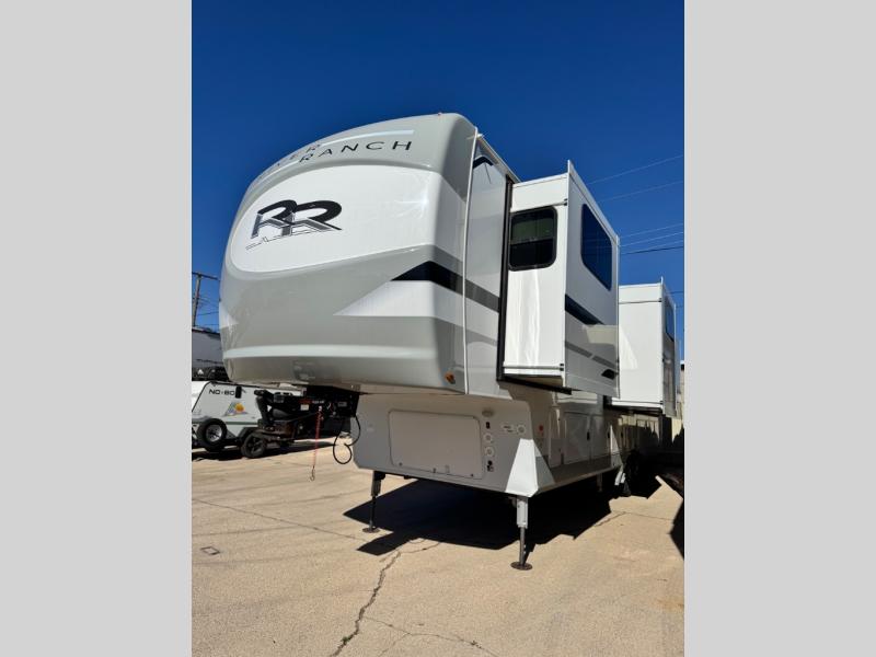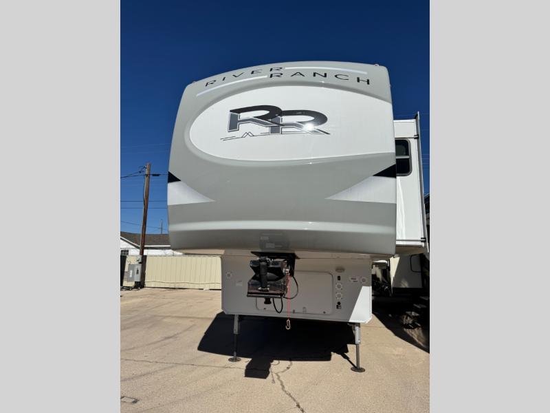 With any River Ranch fifth wheel by Palomino, you will love the practical living, the storage, the tow ability, and the lavish style in each luxury RV! There is a 7' interior height and a 101" wide body for added space, plus frameless windows, worry-free composite floors, and vacuum bonded walls with Azdel for durability. The River Package is a mandatory option you'll love having with features such as, a touch screen control operating system, a MORryde LRE4000 suspension, and three A/C's units with an energy management system. These fifth wheels also include the Ranch Package that comes with a memory foam mattress, stainless steel residential appliance package, MCD day/night roller shades, plus a JBL sound system. There's many more features to love about the River Ranch fifth wheels, like the upgraded true solid surface countertops, the French mirrored sliding closet doors, and the painted fiberglass front cap!