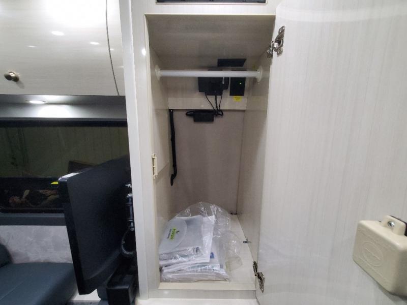 This Plateau Class B diesel motorhome features two dining locations for you to enjoy your delicious meals at thanks to the innovative Lagun table. There is also an array of storage options between the overhead cabinets, the soft-close drawers, and the pull-out pantry. If you have to get a little bit of work done while on the road, then you will love the front lounge workstation with the 120V power outlet, the USB charging ports, and the extended Corian countertop with a privacy shade and storage cabinets too. The microwave makes it easy for you to pop a bag of popcorn and enjoy eating it while you relax on the power sofa with memory foam sofa cushions!