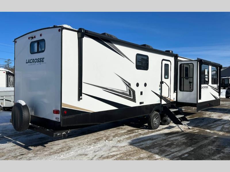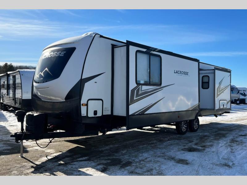 If you used to think that you had to spend a fortune to get a luxury RV, think again because the Prime Time LaCrosse travel trailer proves that you can combine luxury with value! The LaCrosse features premium vinyl flooring, large panoramic windows, an 82" interior height, motion-sensor LED lighting, and USB ports. On the exterior, the fully enclosed underbelly protects your unit so that you can adventure during colder weather, and the LED-lit electric awning is certainly a valuable feature that allows you to sit outside underneath some shade on a sunny afternoon. Come choose your model today!
