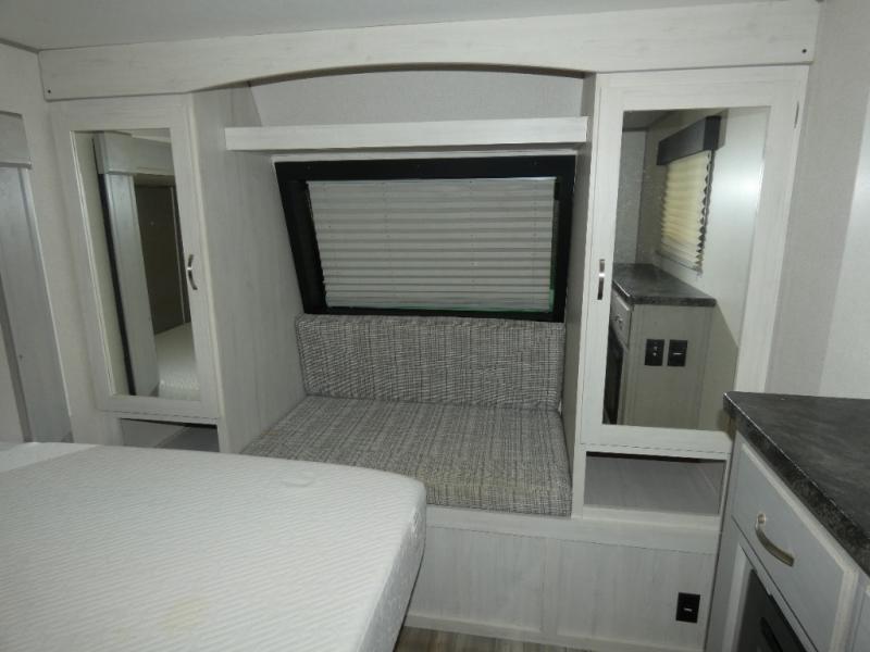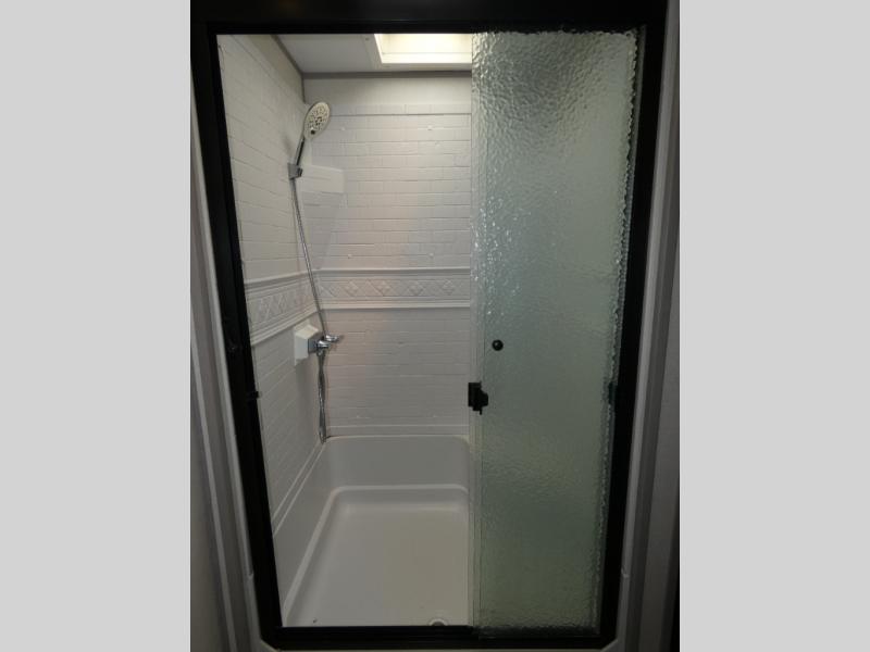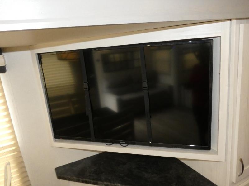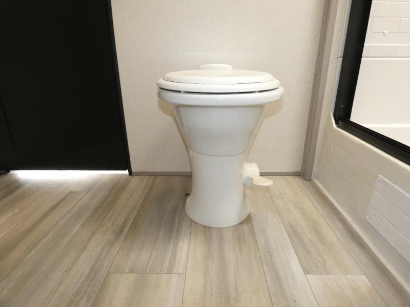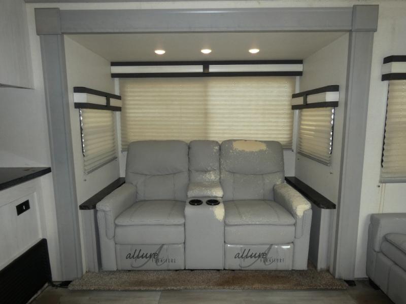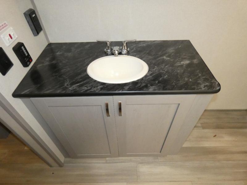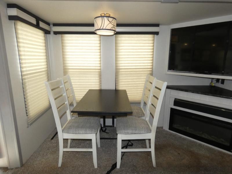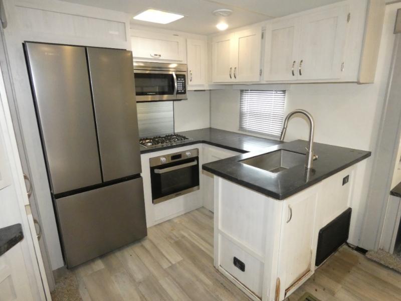 You will be ultra impressed by this LaCrosse travel trailer! First, the interior is made to feel just like your own home with its theater seating, hide-a-bed sofa, free-standing table with chairs, and entertainment center with 50" LED TV and fireplace. Second, you'll find even more residential comfort in the rear kitchen that has a Furrion residential cooktop, a 30" microwave oven, and a 10.7-cubic foot refrigerator. And lastly, the walk-through bathroom has two doors on either side with one of those doors leading directly into the front private bedroom, so you know you'll enjoy great comfort in this space each night. There is also a bedroom bench at the front of this trailer which gives you an enjoyable place to relax as you take in the views from the front windshield.