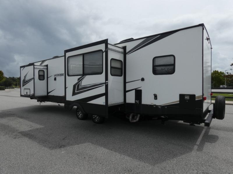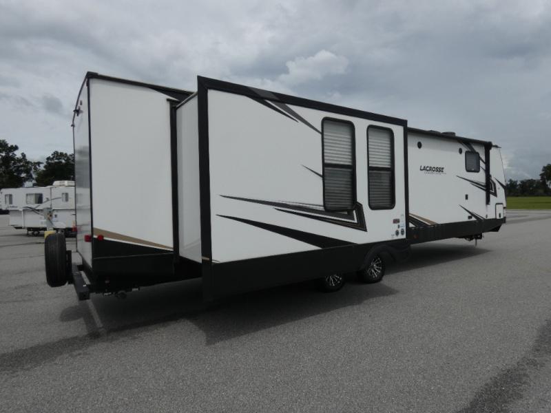If you used to think that you had to spend a fortune to get a luxury RV, think again because the Prime Time LaCrosse travel trailer proves that you can combine luxury with value! The LaCrosse features premium vinyl flooring, large panoramic windows, an 82" interior height, motion-sensor LED lighting, and USB ports. On the exterior, the fully enclosed underbelly protects your unit so that you can adventure during colder weather, and the LED-lit electric awning is certainly a valuable feature that allows you to sit outside underneath some shade on a sunny afternoon. Come choose your model today!
