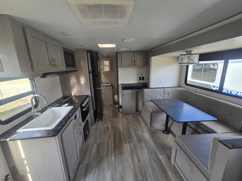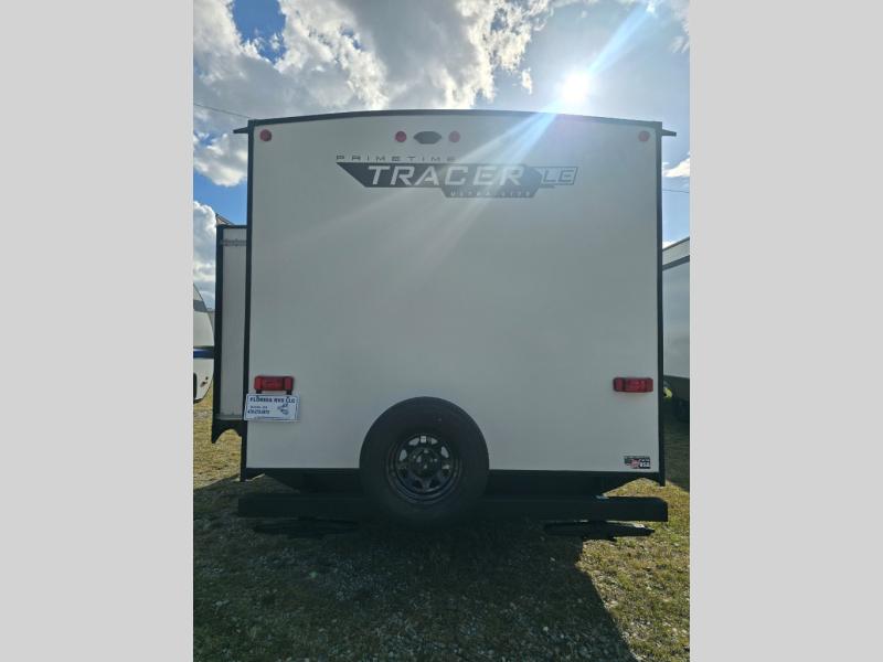 With any Tracer LE travel trailer by Prime Time, you will have Eternabond construction, an enclosed and heated underbelly by radiant and forced air heat to tank compartment for four seasons of travel, a manual tongue jack and stabilizer jacks, plus steel wheels and steel entry steps with an XL grab handle. Inside there is LED lighting, a soundbar, shaker style cabinet doors, and more depending on the trailer you choose!