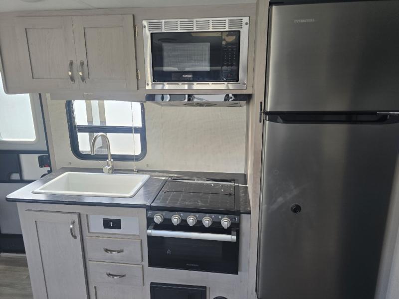 Looking to travel to see new campgrounds and enjoy the outdoors? This trailer offers you that choice then you can return to inside comforts from a queen bed with dual wardrobes to a U-shaped dinette slide out that allows you to provide overnight guests sleeping arrangements once you have finished your dinner. The galley kitchen offers a 2 in 1 gas oven and range, plus a large two-door refrigerator and microwave. The rear full bathroom might just be the reason you wanted this RV thanks to the privacy, the linen storage and all the amenities to allow you to skip the public facilities.