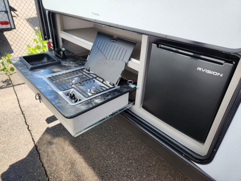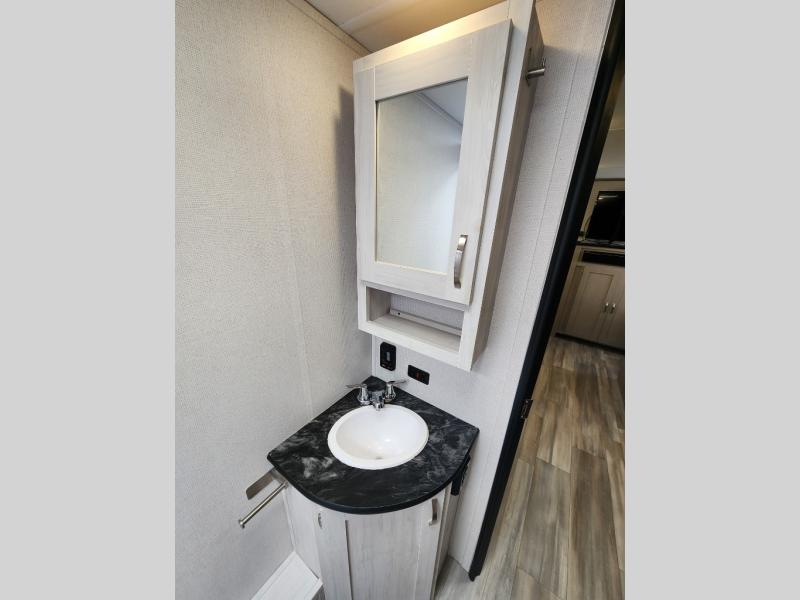 With any Tracer travel trailer by Prime Time, you will have Eternabond construction, a fiberglass front cap, a fully enclosed and heated underbelly by radiant and forced air heat to tank compartment for four seasons of travel, electric stabilizer jacks for easy setup, plus solid stance entry steps and an XL grab handle for a secure entry and exit. Inside there is LED lighting throughout with motion sensor lights in key locations, shaker style cabinet doors, solid surface galley countertops and a stainless steel galley sink, plus more depending on the trailer you choose!