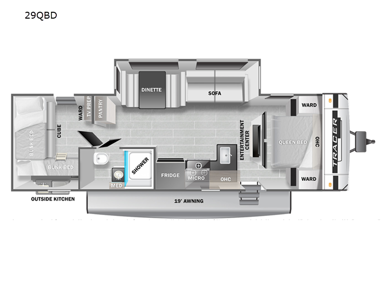 Prime Time RV Tracer travel trailer 29QBD highlights: