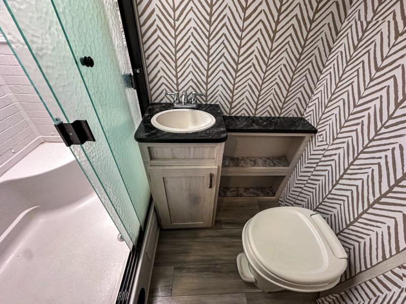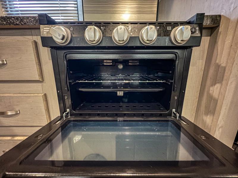 With any Tracer travel trailer by Prime Time, you will have Eternabond construction, a fiberglass front cap, a fully enclosed and heated underbelly by radiant and forced air heat to tank compartment for four seasons of travel, electric stabilizer jacks for easy setup, plus solid stance entry steps and an XL grab handle for a secure entry and exit. Inside there is LED lighting throughout with motion sensor lights in key locations, shaker style cabinet doors, solid surface galley countertops and a stainless steel galley sink, plus more depending on the trailer you choose!