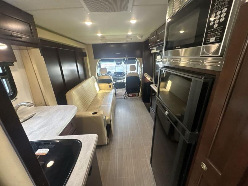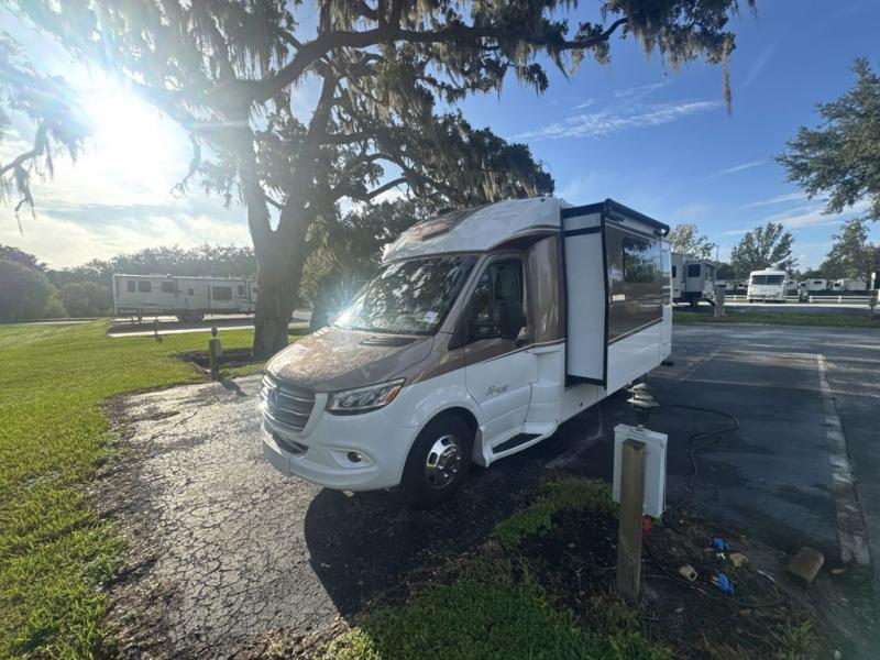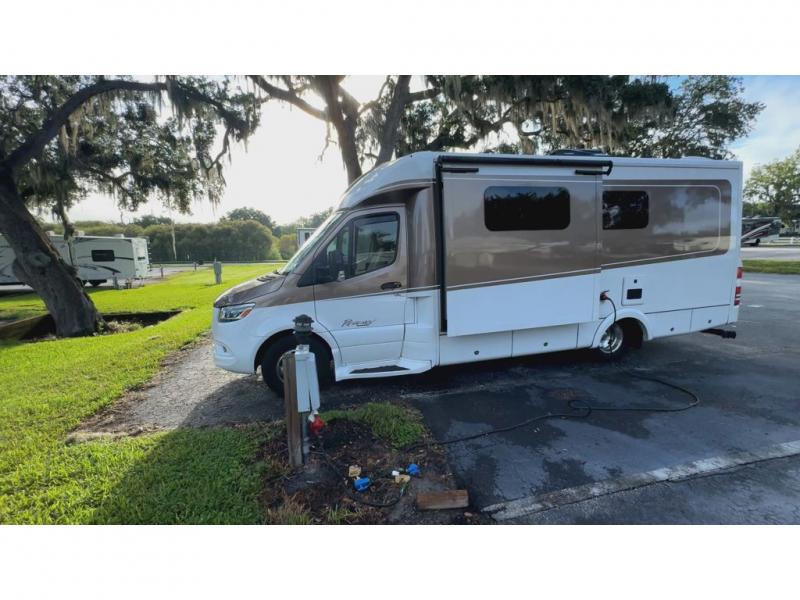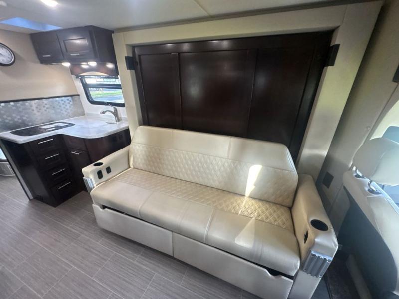 Allow yourself the luxury and freedom to come and go as you please with this Ultra Brougham Class B+ diesel motorhome. You will love the ease and maneuverability of its size for parking and traveling in town as well as the space it offers inside when you are ready to break and park for awhile. The driver and passenger seats swivel around so that you can socialize with the others, and the full bathroom has everything you need to get squeaky clean each morning including a radius shower and a vanity sink. On the outside, you will find a handy pass-through storage compartment for all of your extra travel gear, plus there is even an exterior shower if you need to rinse off before heading inside. At night, a pull-down Murphy bed creates a comfortable space to sleep. In the morning, just fold it up, and you don't even have to make your bed because no one will even see it!