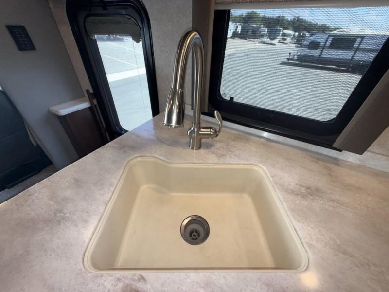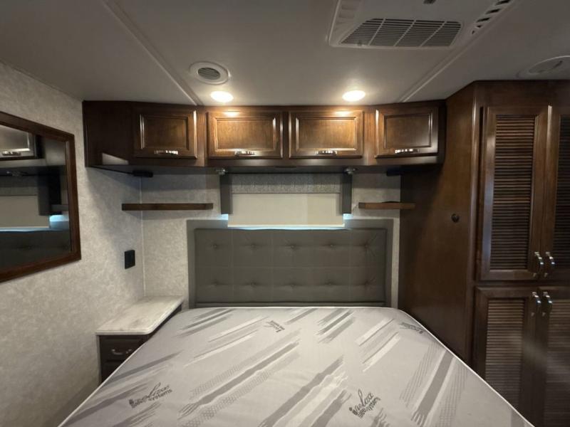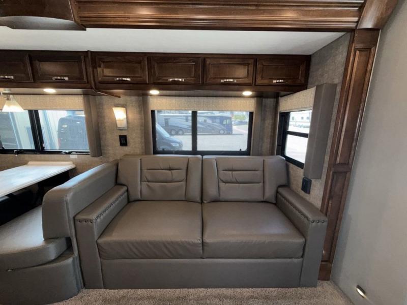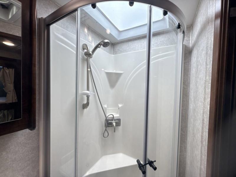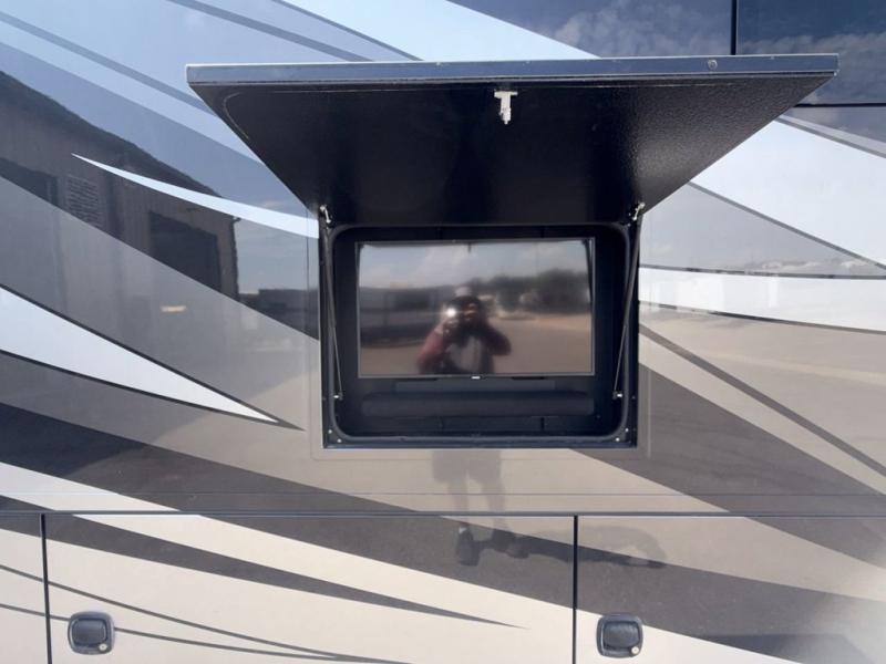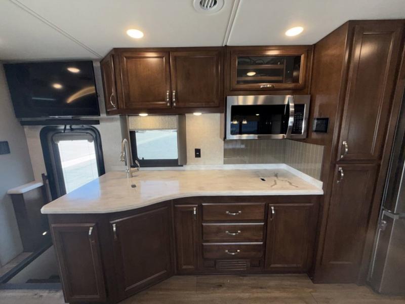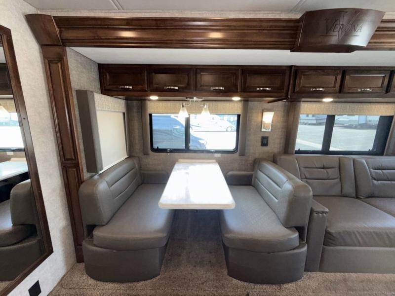 With any Renegade Verona Super C diesel motorhome, you will have confidence to explore the open road! The Cummins 360HP 3200TRV Allison transmission gives you the power and performance to travel anywhere, and the 3000-watt Magnum Hybrid inverter makes this an electric coach, plus the four-point automatic hydraulic leveling system allows for easy setup. The interior boast about the solid hardwood cabinets including every cabinet stile and passage door are made from hardwood for true residential craftsmanship and the articulating cabinet hinges complete the package. More luxurious features include the polished solid surface countertops, the iRelax memory foam mattress, the full length wardrobe with a removable shelf and shoe storage, and the color coordinated fiberglass shower with glass door. Choose extreme luxury, purpose and durability, take a Verona on the road today!