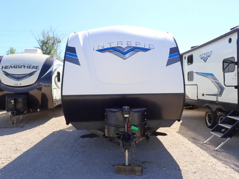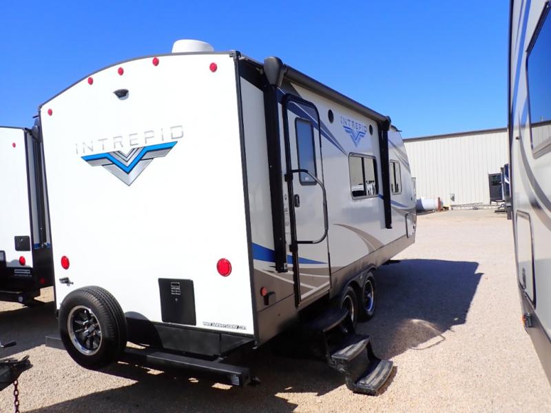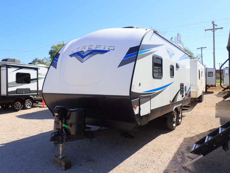 Riverside's Intrepid line of travel trailers will be your guide to new adventures. Sleek, durable, comfortable... you will love an Intrepid the moment you see one. The employees of Riverside took the skills and experience learned from designing and building the award-winning Retro line of campers and shaped it into the epitome of a modern RV. From its aerodynamic molded front cap to its low-maintenance fiberglass exterior, to its cutting-edge appliances and components - Riverside RV's Intrepid leads the way to your next RV adventure.