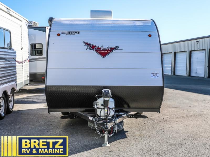 Each Retro travel trailer by Riverside RV will take you back in time with its vintage look, but will still impress you with its modern comforts. The double welded all-aluminum cage and powder coated chassis provide durability, along with the PVC roof membrane and diamond plate rock guard. You'll enjoy indoor and outdoor speakers, USB ports for your electronics, plus an AM/FM/Bluetooth stereo to play your favorite tunes. Each model also includes front and rear stabilizer jacks, electric brakes, a high speed roof vent, plus a 13,500 A/C to keep you cool during the hot summer camping months.