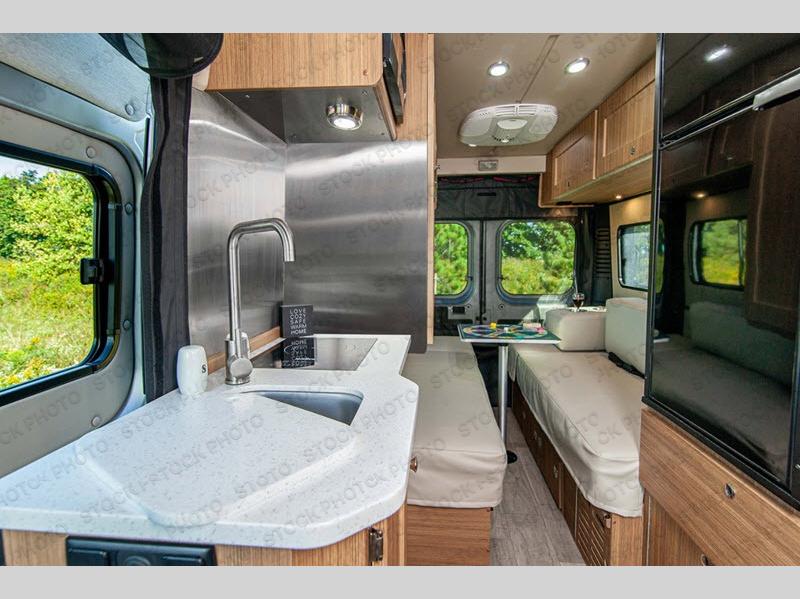 The Roadtrek Class B gas motorhomes are built upon the stylish Ram ProMaster chassis with a 3.6L V6 gas engine to power your trips near and far. The rearview backup camera, the stability program, and the Uconnect 3 with navigation and a 5" touchscreen will make the drive just as sweet as the destination. Each model includes a 12V refrigerator, a two-burner recessed propane stove with a flush cover and built-in igniter, and ample storage space for all your belongings. The instant hot water system with 36,000 BTU will provide hot water when you need it, and the 16,000 BTU propane automatic furnace will keep you warm if you travel year around.
