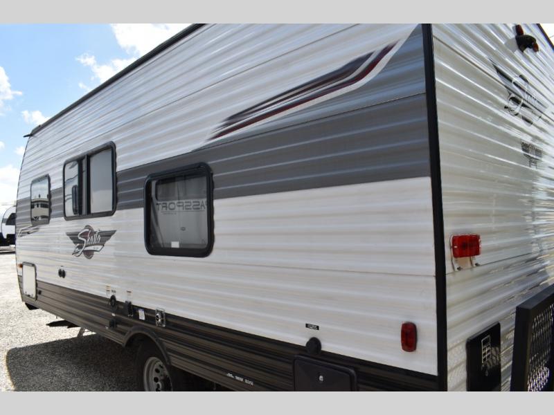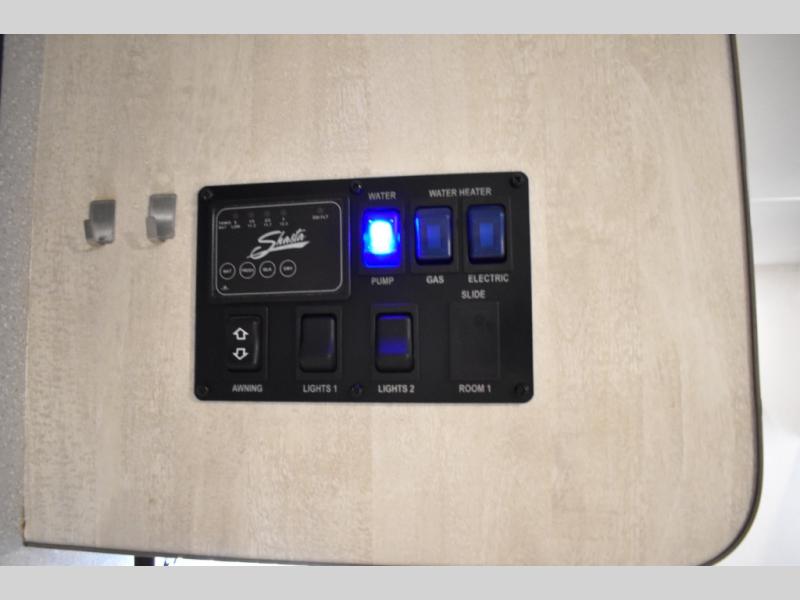 With each Shasta travel trailer by Shasta RVs, premium wood products are used such as 2x2 wall studs on 16" centers and 5/8" thick tongue and groove plywood floors. The 5" wood roof trusses support full walk-on roof decking wrapped with a seamless PVC membrane. Also included is a aerodynamic radius front profile, a front colored rock guard to protect against road debris, a straight axle with electric brakes, molded rain gutter with extra long spouts, a power tongue jack for easy setup, plus an oversized, lighted pass-through compartment with exterior access, and interior access under the bed. The interior offers decorative cabinet pulls, lighted cupholders with two USB chargers, a stainless steel sink, and more providing value and convenience. Rest easy when you purchase a lightweight Shasta that is built to last!
