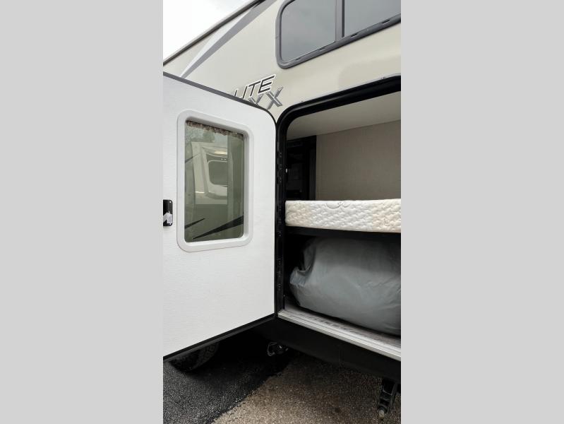 If you want to power up your camping experiences, take it to the max with the Starcraft Super Lite Maxx travel trailer! Each unit is built to last with a Magnum Roof system, PVC roofing membrane, and a TuffShell exterior which is a vacuum-bonded laminated construction, reinforced with heavy-duty fiberglass and welded aluminum frames. The 15" nitrogen-filled off-road radial tires with aluminum rims, impact-resistant galvanized steel wheel wells, and rubber torsion axle with increased ground clearance adjustments are great additions that allow the Super Lite Maxx to take adventures off the beaten path. Transform your campsite into the party space everyone wants to be a part of by using the marine-grade exterior speakers and power awning.