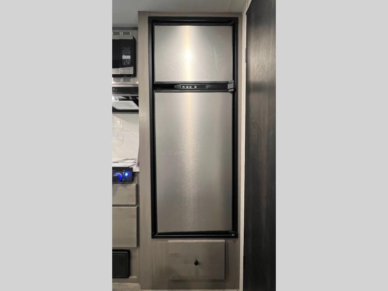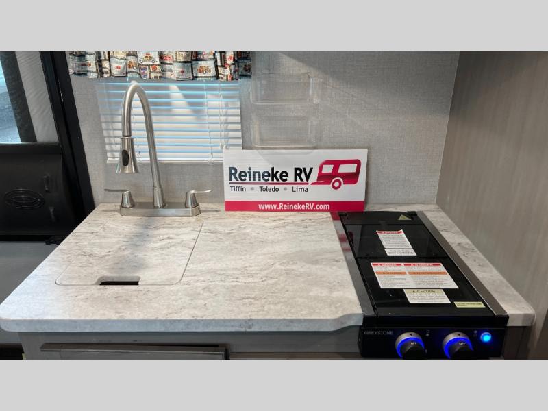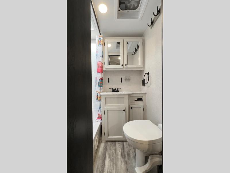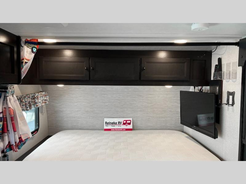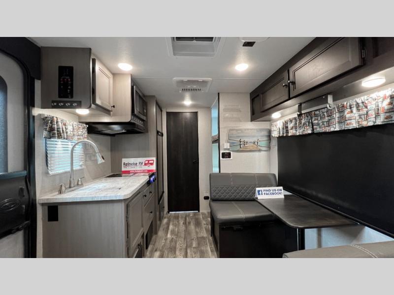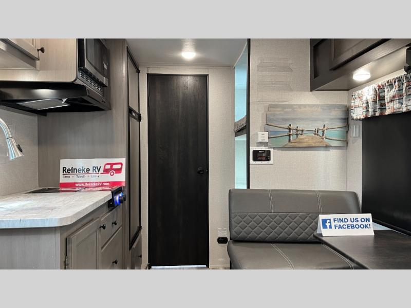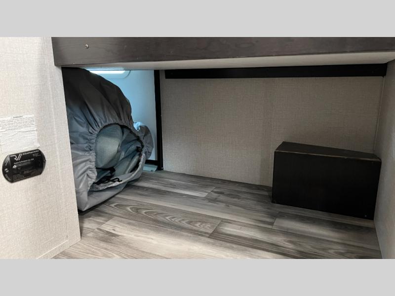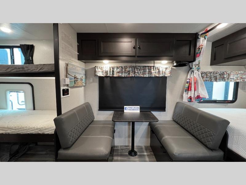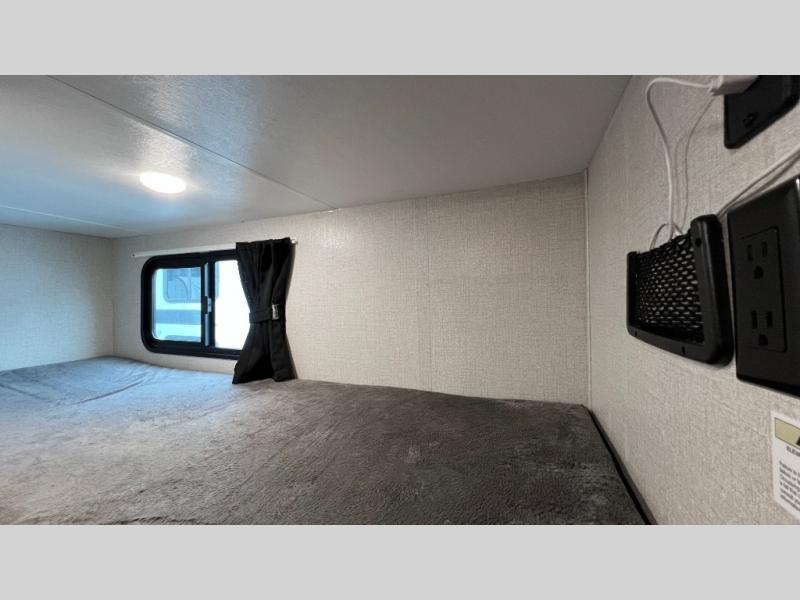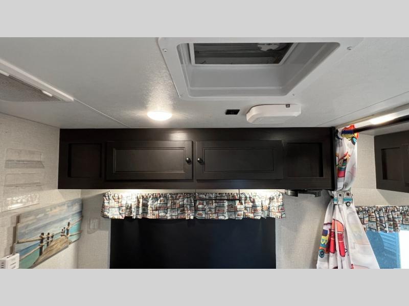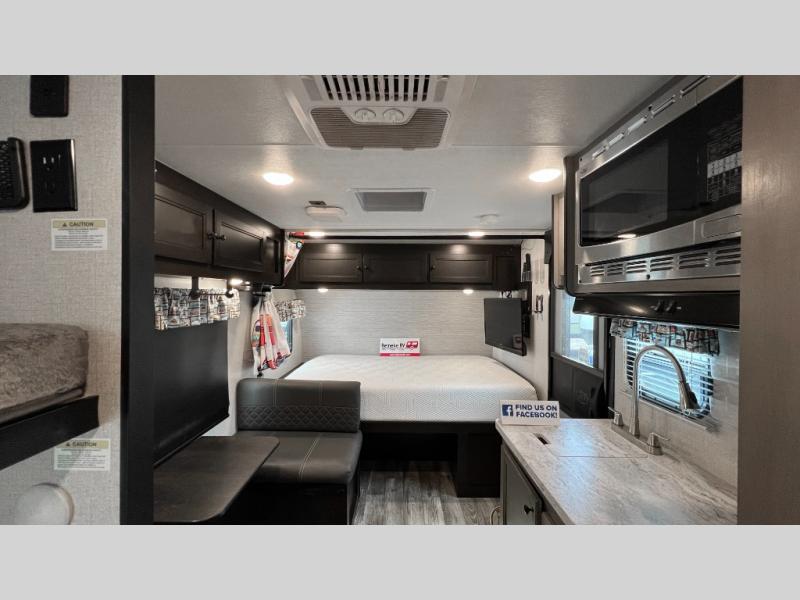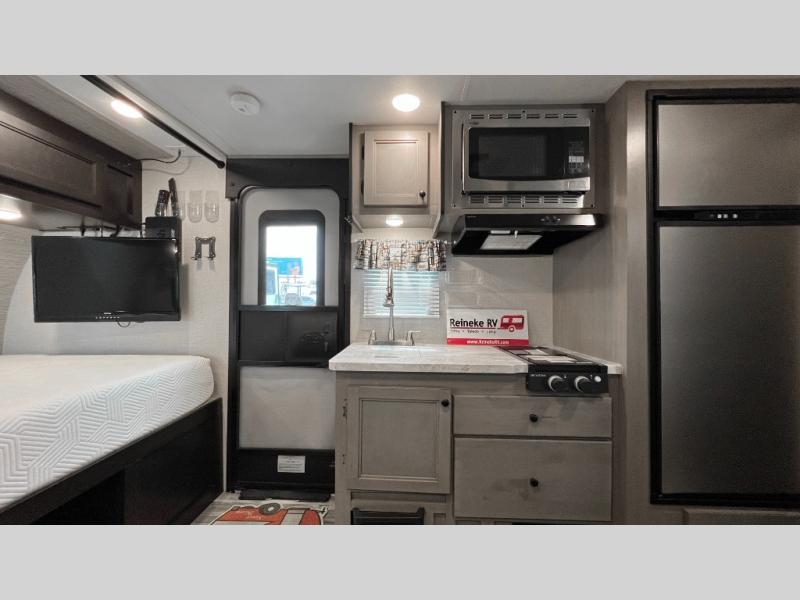 Get to know your state parks a little better with this Super Lite Maxx travel trailer! There is room for four campers to sleep comfortably with the bunk beds, booth dinette and 80" bed, and all of those people can stay clean by using the tub/shower in the full bathroom. Meal prep will be a cinch in this kitchen because it has a two-burner recessed range, convection microwave, residential high-rise faucet, and a stainless steel undermount sink. If you need to stay inside because of bad weather, you'll find some entertainment from the 32" TV and there are a few overhead cabinets that you can use to store your board games and electronics.