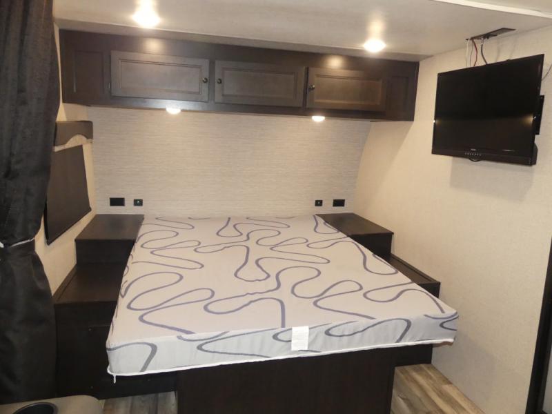 If you want to power up your camping experiences, take it to the max with the Starcraft Super Lite Maxx travel trailer! Each unit is built to last with a Magnum Roof system, PVC roofing membrane, and a TuffShell exterior which is a vacuum-bonded laminated construction, reinforced with heavy-duty fiberglass and welded aluminum frames. The 15" nitrogen-filled off-road radial tires with aluminum rims, impact-resistant galvanized steel wheel wells, and rubber torsion axle with increased ground clearance adjustments are great additions that allow the Super Lite Maxx to take adventures off the beaten path.