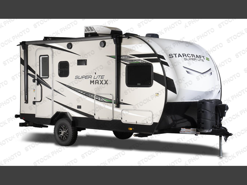 If you want to power up your camping experiences, take it to the max with the Starcraft Super Lite Maxx travel trailer! Each unit is built to last with a Magnum Roof system, PVC roofing membrane, and a TuffShell exterior which is a vacuum-bonded laminated construction, reinforced with heavy-duty fiberglass and welded aluminum frames. The 15" nitrogen-filled off-road radial tires with aluminum rims, impact-resistant galvanized steel wheel wells, and rubber torsion axle with increased ground clearance adjustments are great additions that allow the Super Lite Maxx to take adventures off the beaten path. Transform your campsite into the party space everyone wants to be a part of by using the marine-grade exterior speakers and power awning, and add the optional Off-Grid Solar Package if you want to take advantage of natural energy. You can also add an optional Wi-Fi router too!