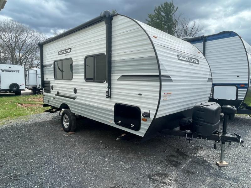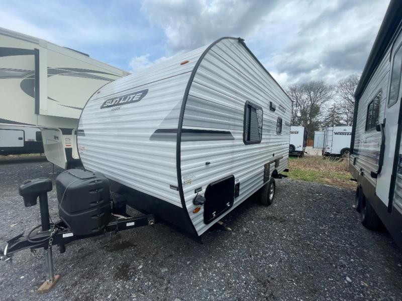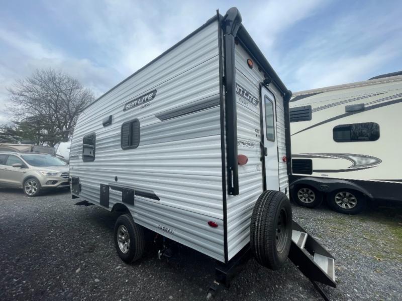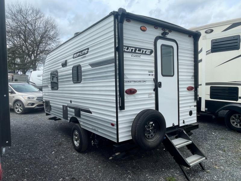 You can trust the build and enjoy your experience with any one of these Sunset Park RV Sun-Lite Classic travel trailers! Their aerodynamic profile is not only easy to haul, but also saves on fuel. They are built to withstand years of traveling even though they are lightweight with a diamond plate rock guard, a one piece PVC roof membrane, EZ lube electric brake axles, and radius tinted safety glass windows with nightshades for added privacy. The mandatory Comfort package includes a Bluetooth radio with inside and outside speakers, a quick connect gas line, a microwave, and an outside shower to help keep the dirt outdoors where it belongs.