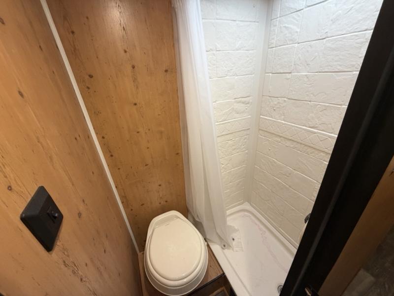 This travel trailer is perfect for couples who want to getaway together! The front bed offers a comfortable place to lay your head at night. When you're not using the booth dinette to enjoy a meal that you prepared with the two burner cooktop or playing a card game, you can transform it into an extra sleeping space. You can start your mornings feeling clean and fresh after showering in the tub with unwanted steam removed with the power roof vent.