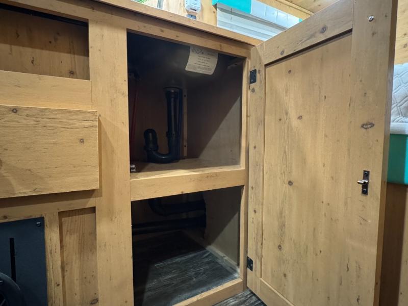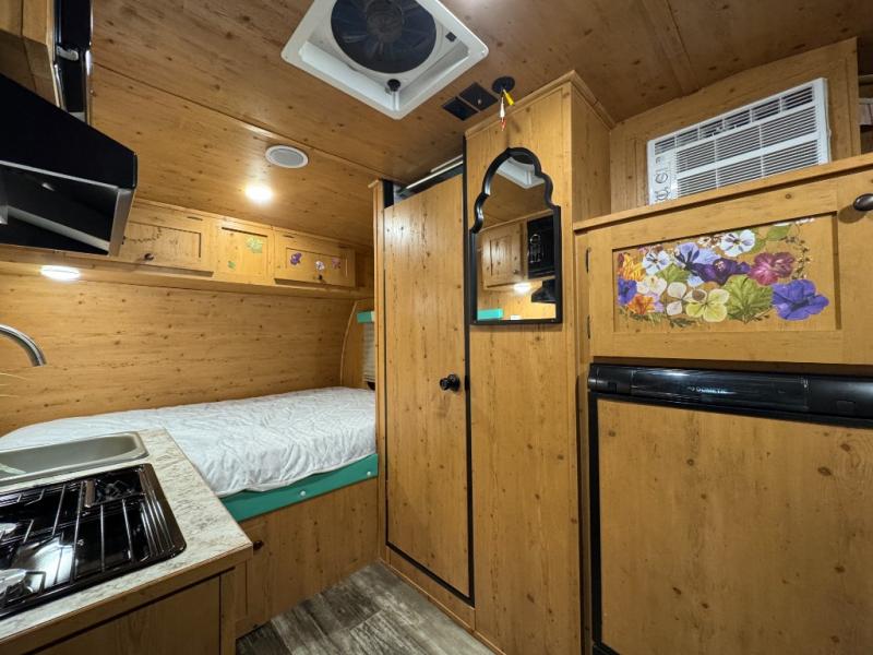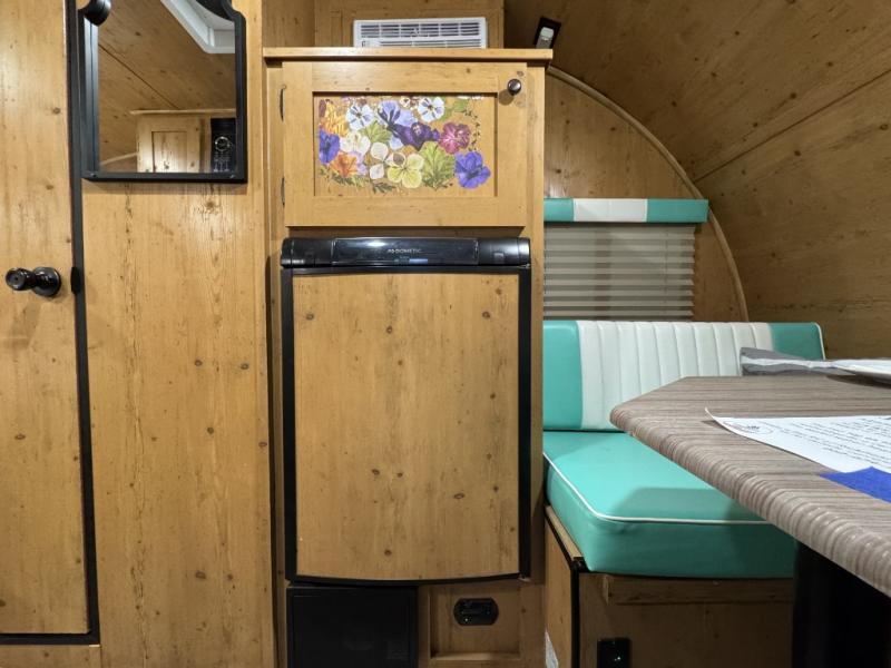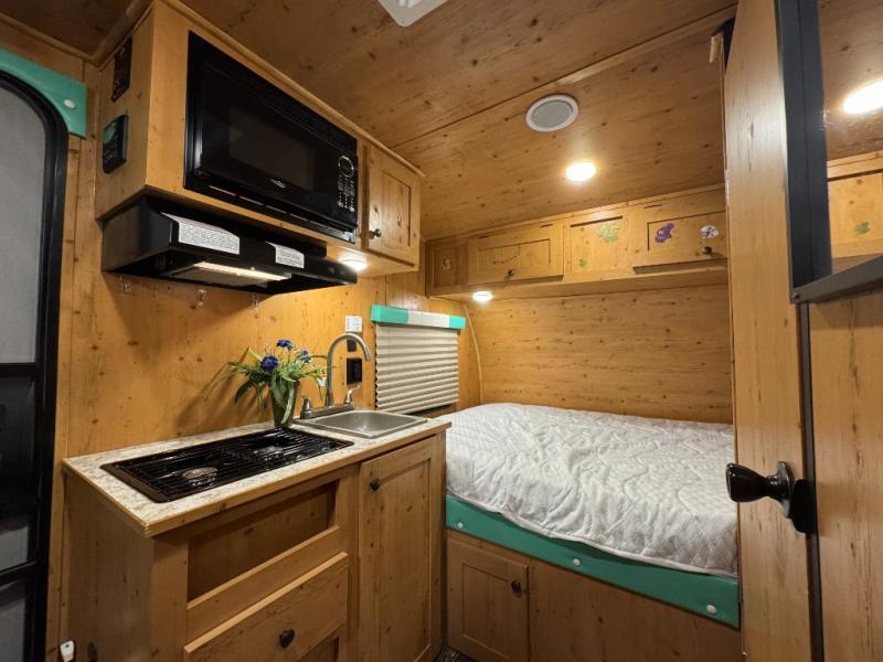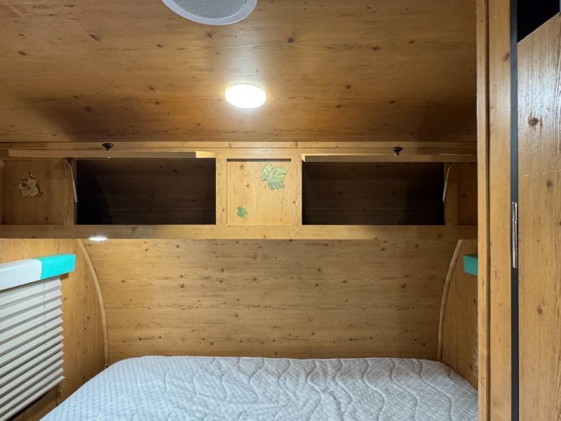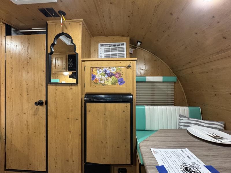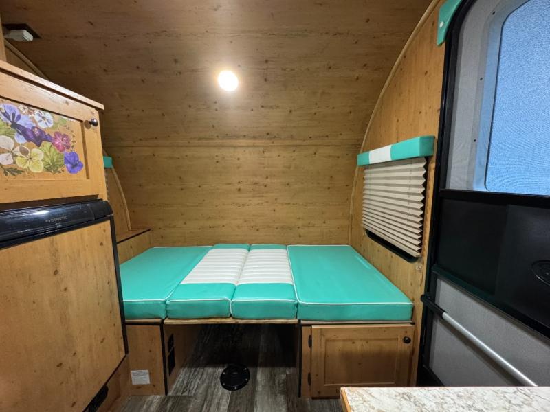 This Sunray travel trailer is the largest and most accommodating because it comes with a wet bath so that you can even take a shower in your trailer! There is a small kitchen on the interior that comes with a two-burner stove top, a refrigerator, and a microwave so that you can cook dinner without having to start a fire, and since it is indoors, you will be able to keep the bugs away while you prepare something delicious to eat. If you need to rinse off some gear, the outside shower will be especially useful, and if you need to charge your devices, use the USB ports. You will also find a Wineguard HDTV antenna on this model. Add the available Classic option for 14" tires instead of the off-road version, color matching rims with Moon Caps, and Retro decor and Diner-Style countertops.