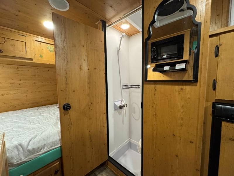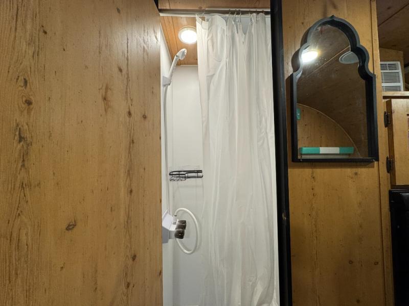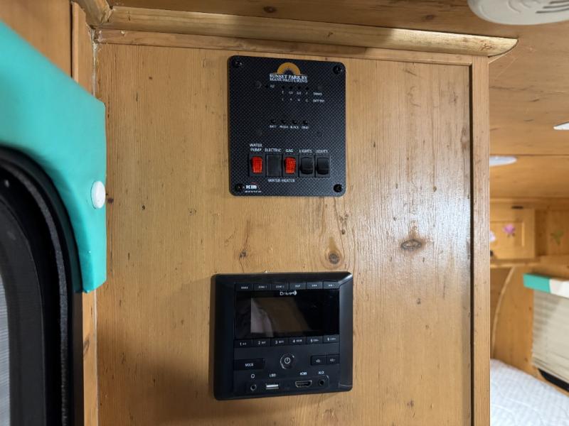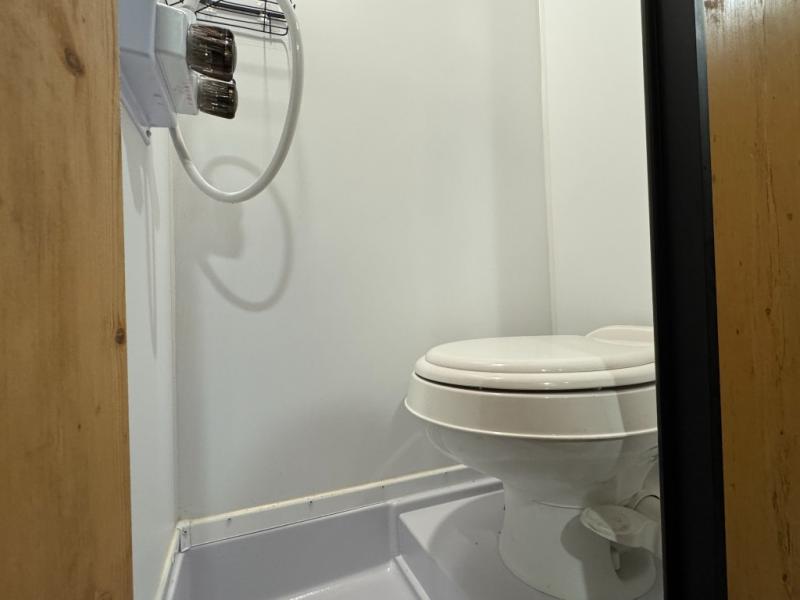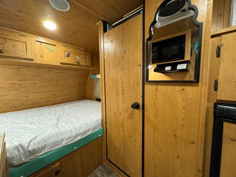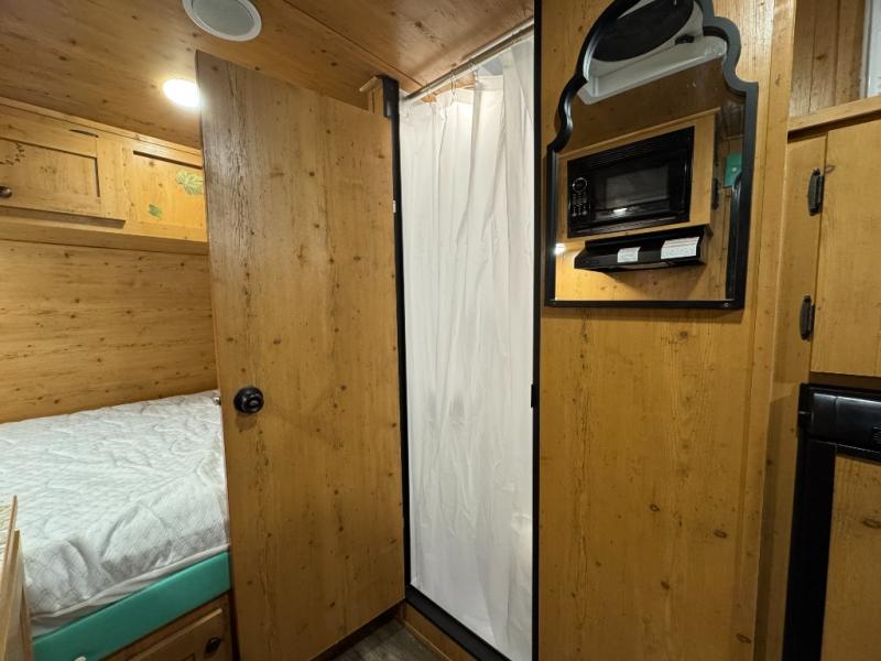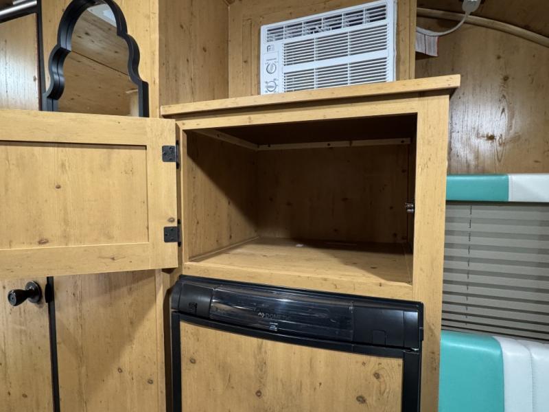 This Sunray travel trailer is the largest and most accommodating because it comes with a wet bath so that you can even take a shower in your trailer! There is a small kitchen on the interior that comes with a two-burner stove top, a refrigerator, and a microwave so that you can cook dinner without having to start a fire, and since it is indoors, you will be able to keep the bugs away while you prepare something delicious to eat. If you need to rinse off some gear, the outside shower will be especially useful, and if you need to charge your devices, use the USB ports. You will also find a Wineguard HDTV antenna on this model. Add the available Classic option for 14" tires instead of the off-road version, color matching rims with Moon Caps, and Retro decor and Diner-Style countertops.
