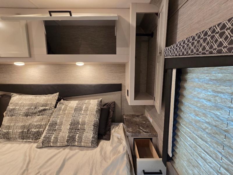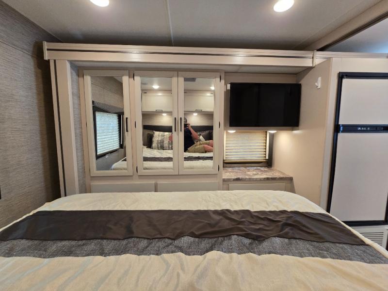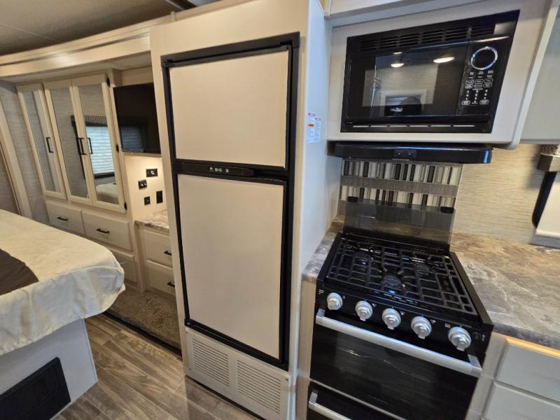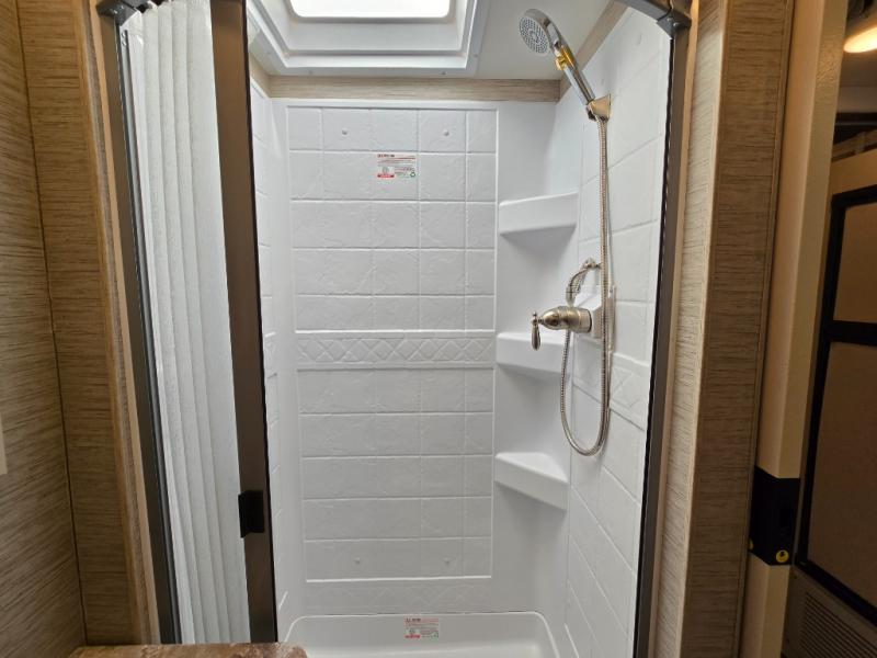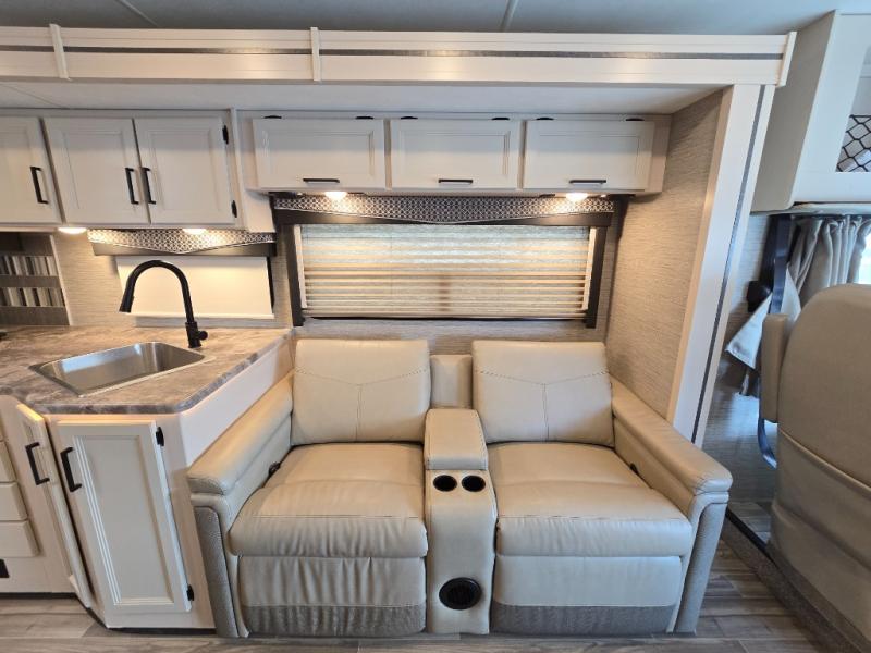 You will love how much space you have in this motorhome thanks to the full-wall slide! There is a cockpit coffee table where you can enjoy your morning cup of Joe at each morning, and the kids can eat breakfast at the Dream Dinette. This model also includes a jack-knife sofa, or you can choose the optional theater seats in place of the sofa if you don't need the additional sleeping space. The chef of your group can prepare meals indoors on the three burner gas cooktop or in the microwave oven, plus there is an exterior kitchen with a refrigerator, a sink, and a 1000-watt inverter! The full bath will allow you to freshen up each day, and you'll feel right at home in the rear private bedroom with a king bed, a closet, plus a 32" TV!