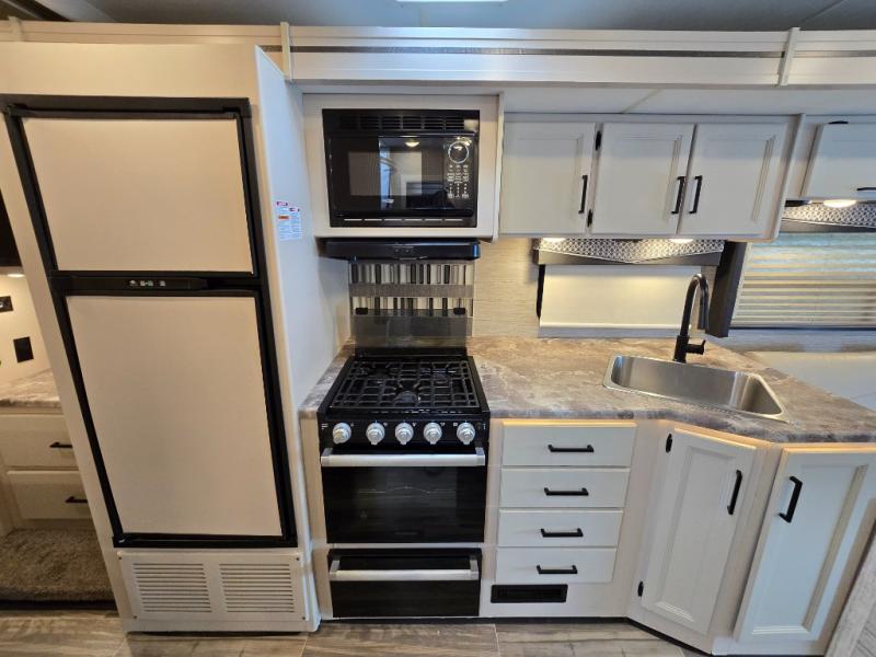 The A.C.E Class A gas motorhome is constructed with a welded tubular steel floor, vacu-bond laminated roof, walls and floor with block foam insulation, and a premium one-piece exterior roof for a coach made to last. You will love the pet-friendly features, like the Bird's Eye window, the Pet-Link multi-purpose tie-down and the Pull-Out Kibble Station with an FDS approved pet bowl liner. Each model includes an Onan RV QG 4,000 gas generator, a Winegard ConnecT Wi-Fi extender +4G, and are pre-wired for solar charging. Some of the other convenient amenities you will find on the A.C.E are frameless windows, a basement pass-through storage, and an exterior LP connection. Head inside to find residential vinyl flooring, pressed laminate countertops, glass tile backsplash in the kitchen, and a designer headboard, bedspread and pillow shams in the bedroom for all-around comfort!
