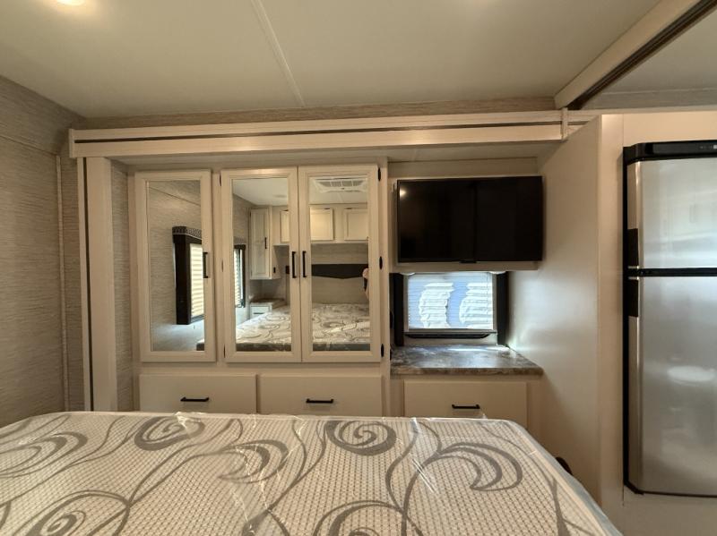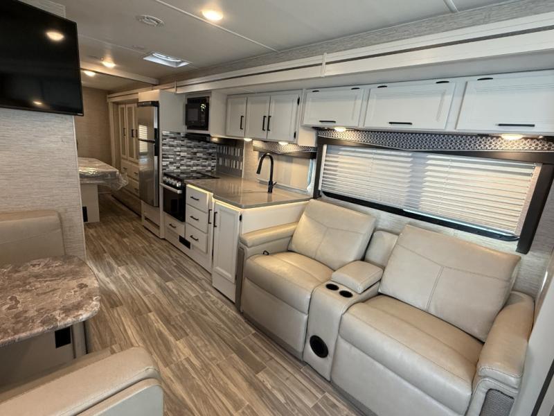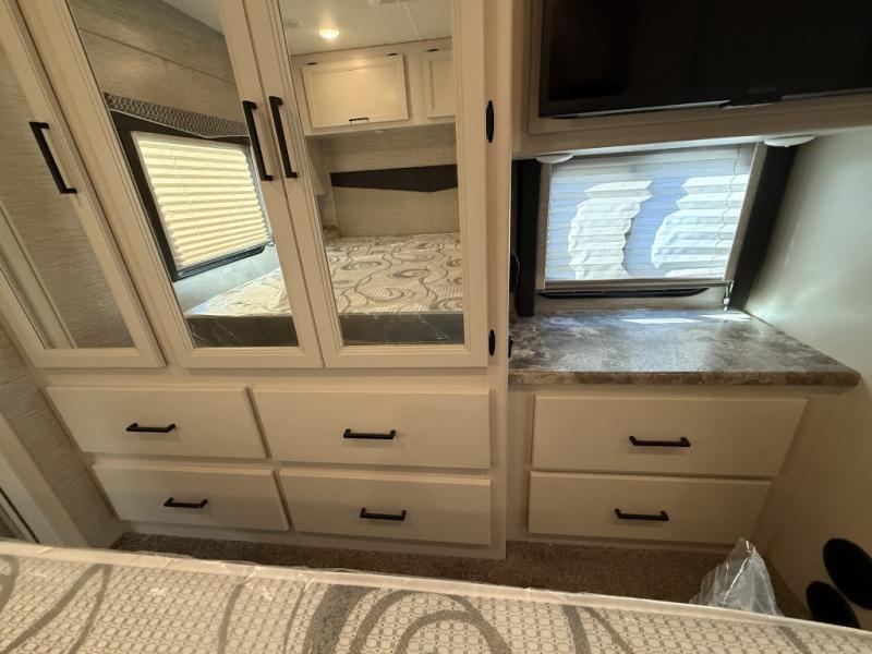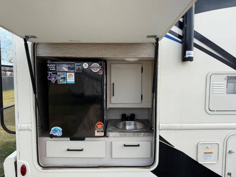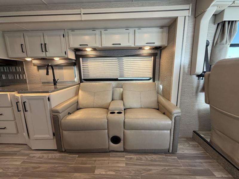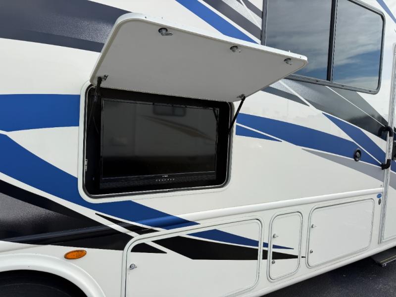 You will love how much space you have in this motorhome thanks to the full-wall slide! There is a cockpit coffee table where you can enjoy your morning cup of Joe at each morning, and the kids can eat breakfast at the Dream Dinette. This model also includes a jack-knife sofa, or you can choose the optional theater seats in place of the sofa if you don't need the additional sleeping space. The chef of your group can prepare meals indoors on the three burner gas cooktop or in the microwave oven, plus there is an exterior kitchen with a refrigerator, a sink, and a 1000-watt inverter! The full bath will allow you to freshen up each day, and you'll feel right at home in the rear private bedroom with a king bed, a closet, plus a 32" TV!