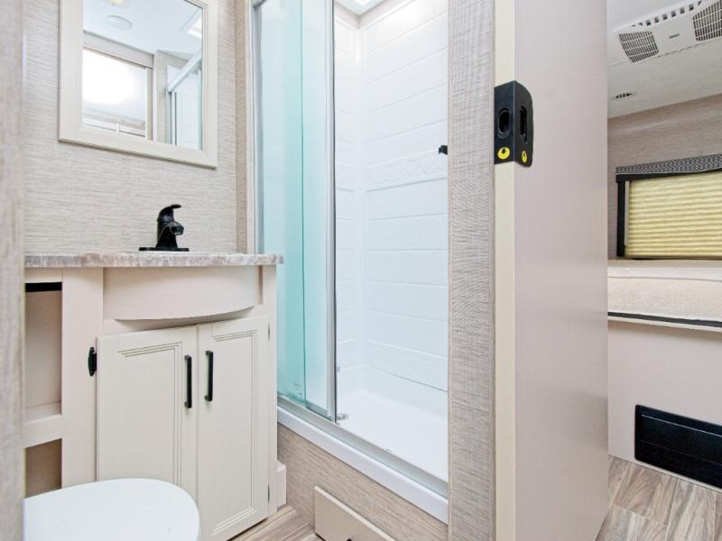 - Drop-Down Overhead Bunk for Extra Sleeping Room