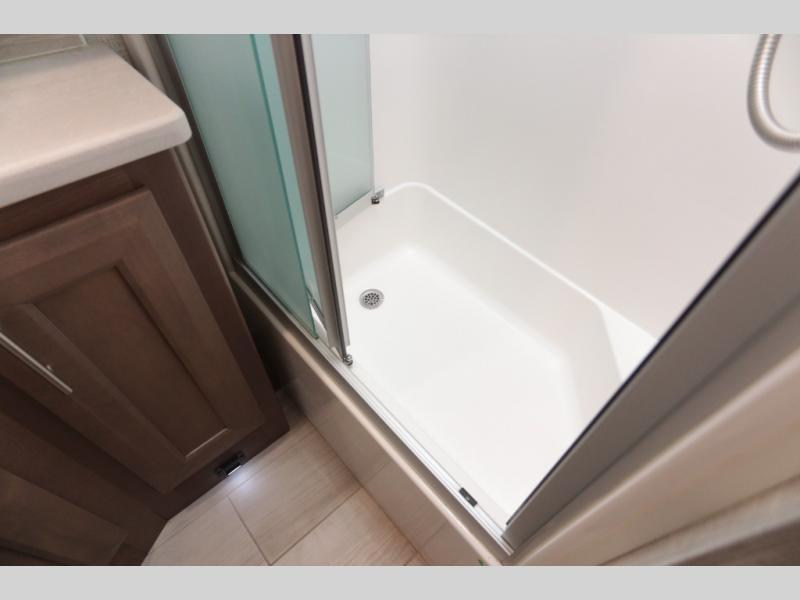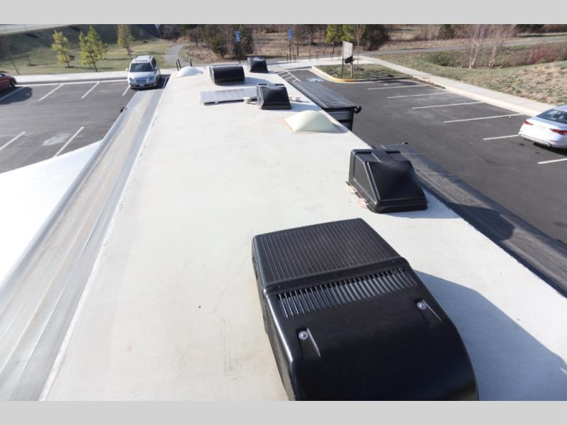 Not many coaches include two full bathrooms, yet this one does for total convenience! The spacious rear bathroom offers a dual-sink vanity and a 52" x 30" full-height shower with glass door that is located off of the walk-through master bedroom with a Tilt-A-View inclining king bed. The other bathroom is mid-coach, and includes a 24" x 34" full-height tub/shower and linen storage directly across from the bunk beds with drawers. In the front, the drop-down overhead bunk above the cab has a 32" TV to watch, and the main living area offers a 49" TV. There is a stackable washer/dryer next to the residential refrigerator allowing you to keep your linens clean and cook at the same time. When it is time to relax, the trifold sofa and Dream dinette, plus captain's chairs that swivel offer seating. And the power awning offers an outdoor living area that is covered for you to sit outside and visit or watch the exterior 39" TV.