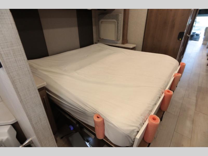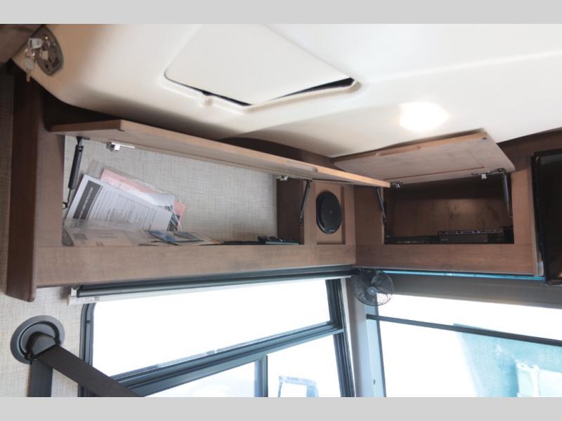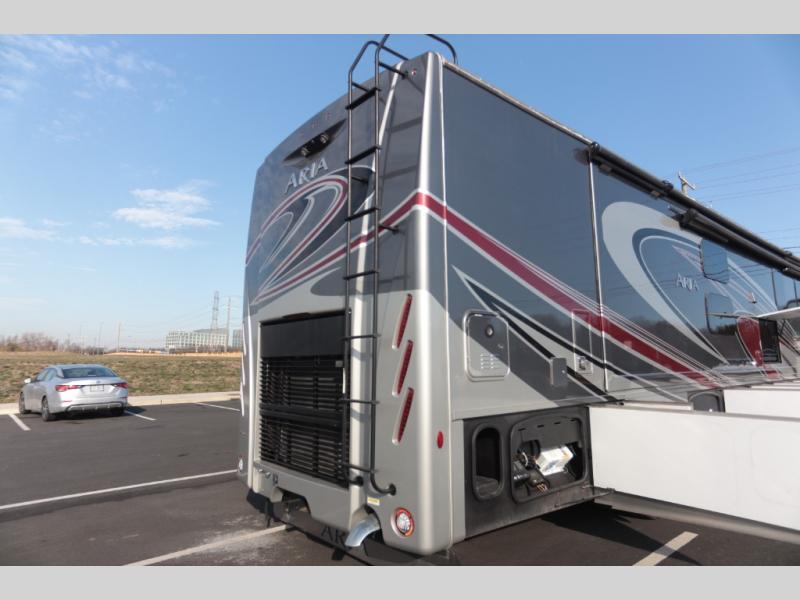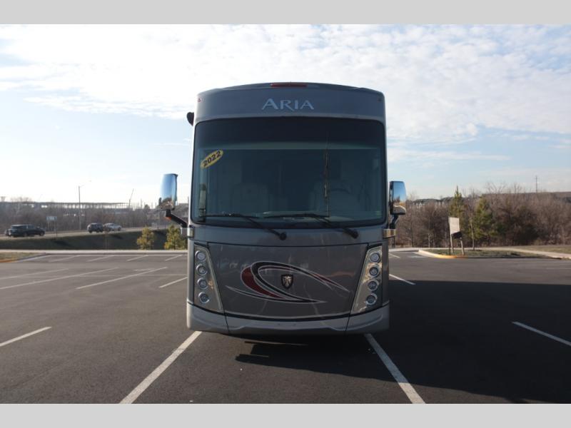 With any Aria Class A diesel motorhome by Thor Motor Coach, experience RV living with all the luxurious amenities you are accustom to, command the roadways with improved handling from the l-beam front axle with a 55-degree wheel cut, and enjoy a smooth ride thanks to the Air-Ride suspension and Sachs shock absorbers. The driver will also appreciate the 10.1" touchscreen dash radio with Bluetooth, navigation, and Sirius/XM prep when navigating the roads, and the comfort of the leatherette reclining/swivel adjustable captain's chairs. The bathroom provides an oversized full height shower with a glass door and a designer backsplash, while the kitchen provides solid surface countertops and a dinette. You will also enjoy designer tile backsplash, a large double bowl stainless steel sink with a single handle faucet, a pull-down sprayer, plus full kitchen amenities. More standout features include the Studio Collection cabinetry with rake style doors and matte finish, living room pin-up lights, and polished porcelain tile flooring, plus much much more depending on the Aria you take on the road!