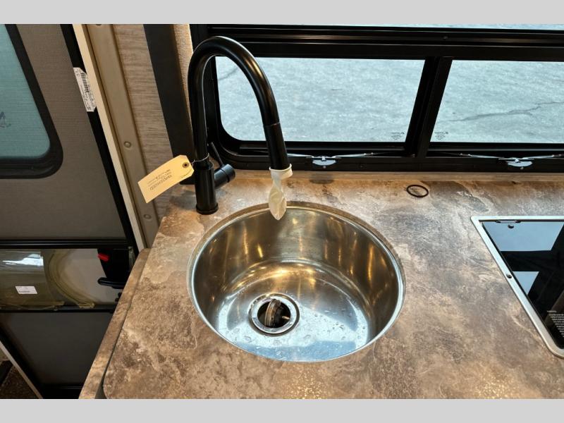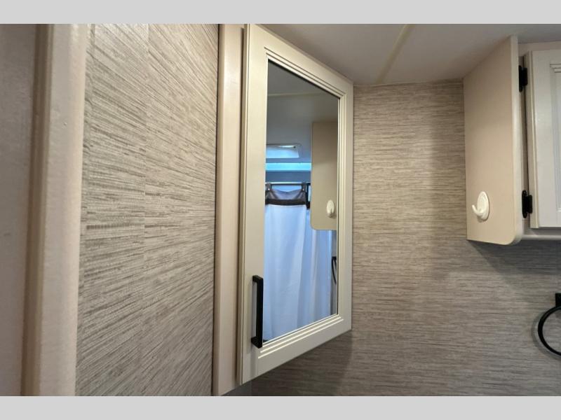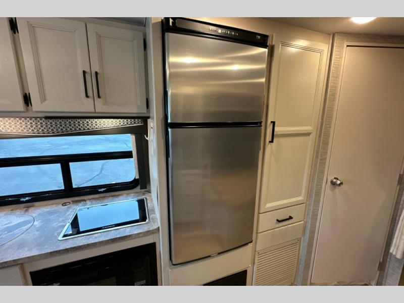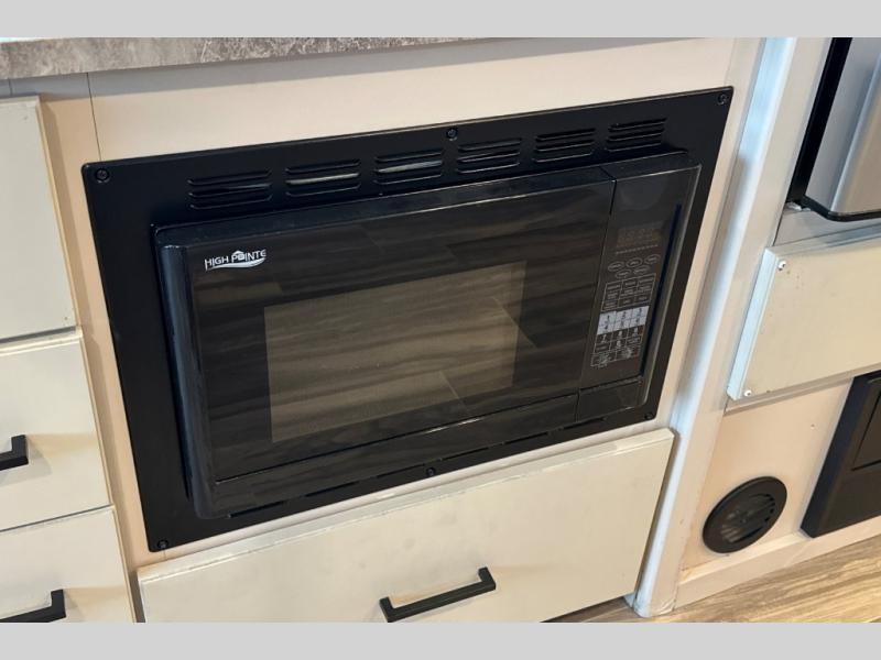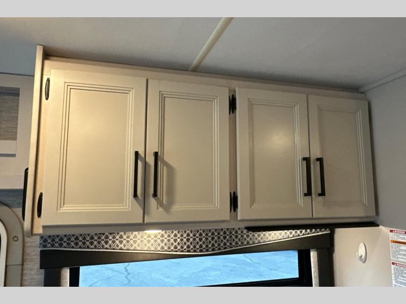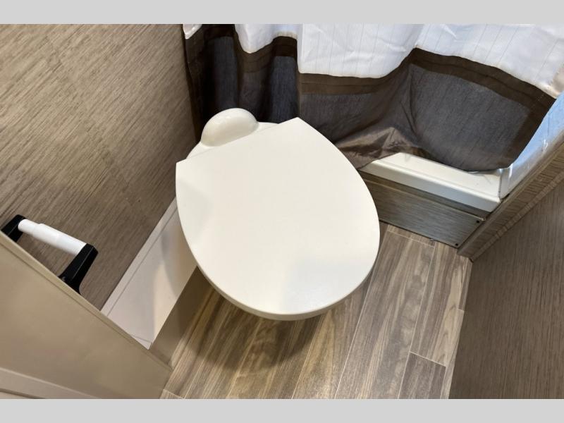 Wherever you decide to roam, do it comfortably in this RUV coach. There is a flip-up queen bed with cushioned seating underneath so you can enjoy added seating space during the day, plus there is a 32" bedroom TV to watch the morning news on. Having a full bath on board is super convenient, especially with a foot flush porcelain toilet, a deluxe shower, and a power vent to keep everything fresh. Once the chef of your group has made lunch on the two burner gas cooktop or in the convection microwave, you can dine at the Dream Dinette or sit outdoors under the 18' power awning with LED lights. This model also includes tons of storage space, including three wardrobes!