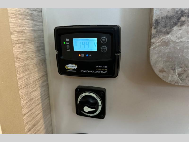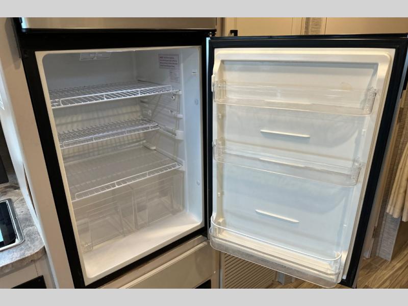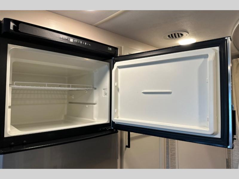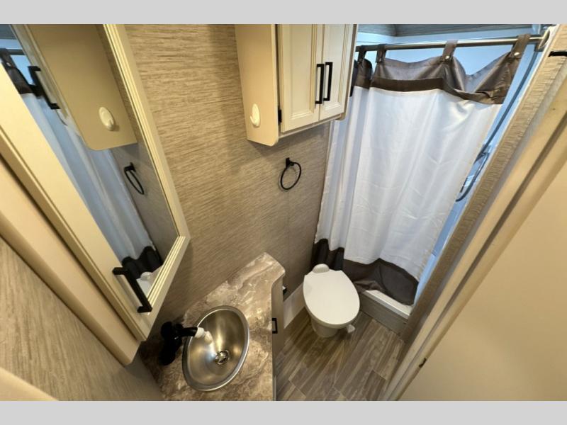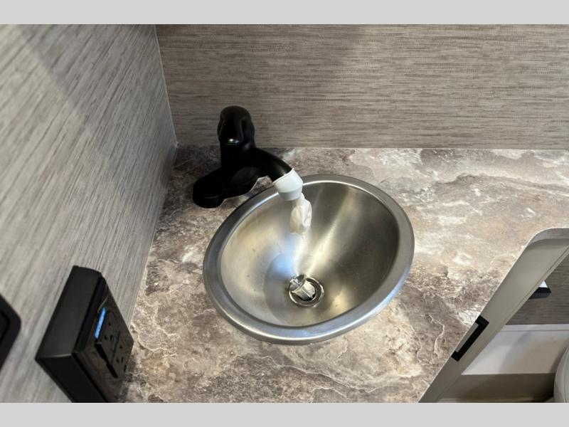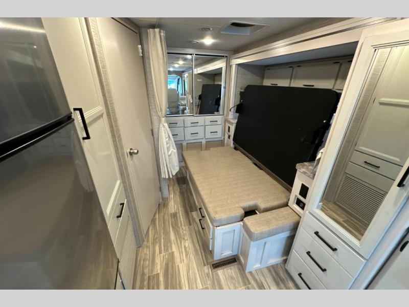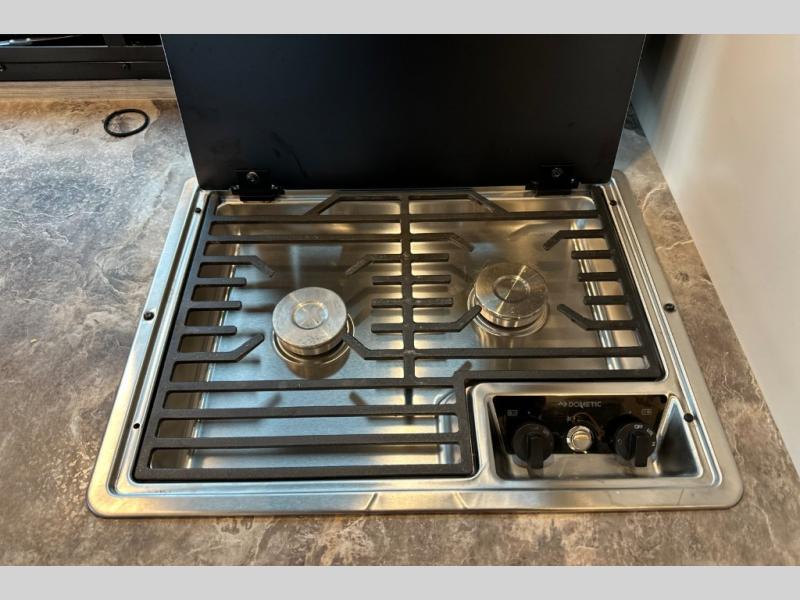 Wherever you decide to roam, do it comfortably in this RUV coach. There is a flip-up queen bed with cushioned seating underneath so you can enjoy added seating space during the day, plus there is a 32" bedroom TV to watch the morning news on. Having a full bath on board is super convenient, especially with a foot flush porcelain toilet, a deluxe shower, and a power vent to keep everything fresh. Once the chef of your group has made lunch on the two burner gas cooktop or in the convection microwave, you can dine at the Dream Dinette or sit outdoors under the 18' power awning with LED lights. This model also includes tons of storage space, including three wardrobes!