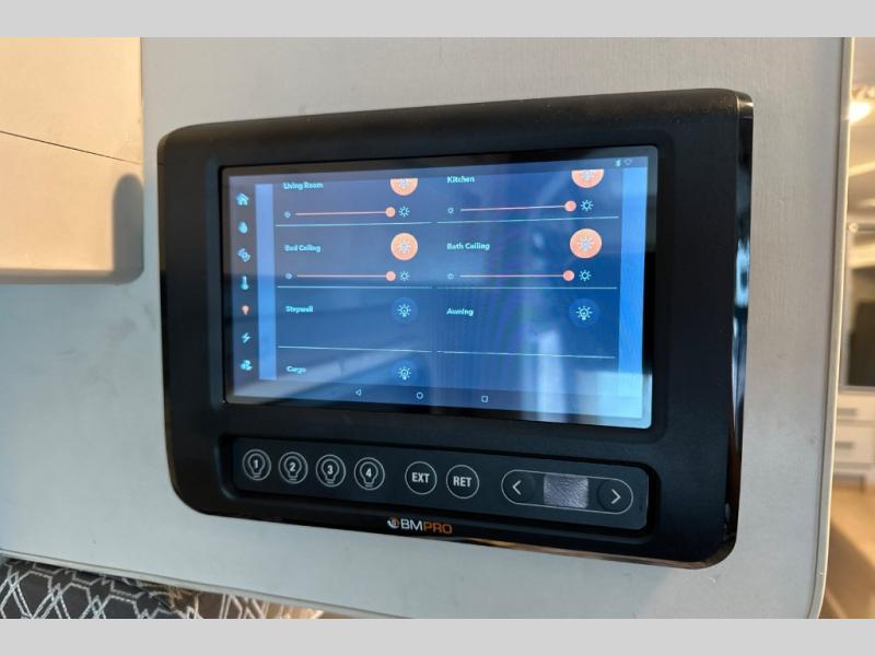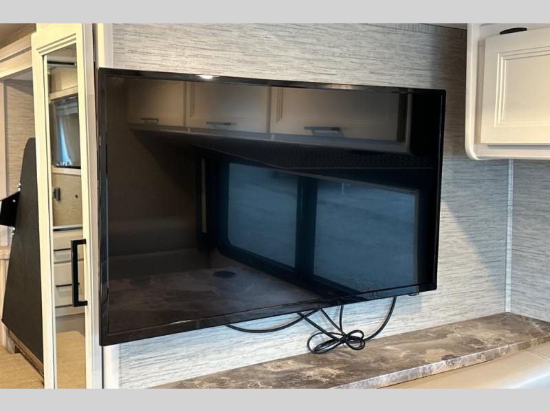 With any Axis RUV Class A gas motorhome by Thor Motor Coach you will enjoy added technology features to make each trip enjoyable, like the RapidCamp+ multiplex lighting and systems control and the Winegard ConnecT 2.0 Wi-Fi/4G/TV antenna. Each model features heated and remote exterior mirrors with integrated side view cameras, reclining and swivel leatherette captain's chairs, and a dash workstation with 110-volt and 12-volt outlets to get some work done if needed. Relaxing after a long day of traveling will be easy with the leatherette furniture, the Euro-style cabinet doors, and 82" interior ceiling height. The HD-MAX exterior with graphics package and black frameless windows provide a sleek look you are sure to love, and don't overlook the power awning with integrated LED lighting and lighted rotocast storage compartments for all your gear.
