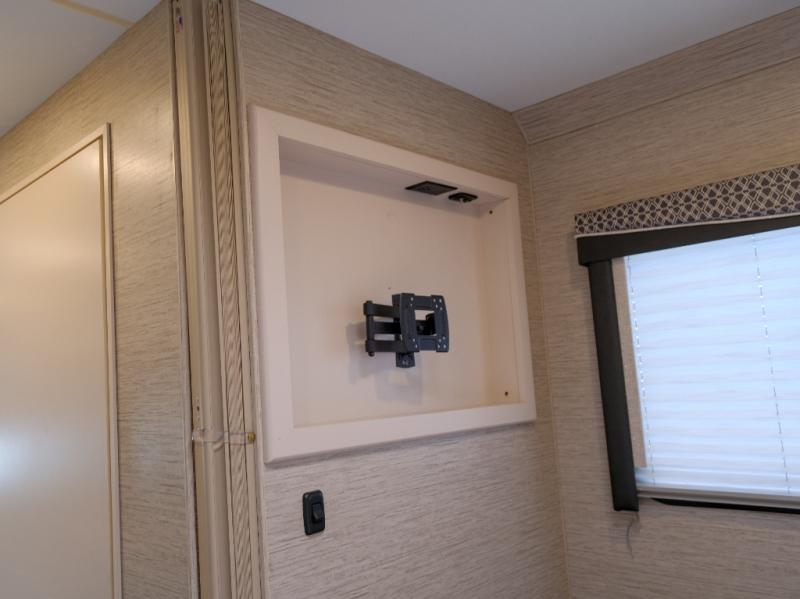 This motorhome will have you feeling right at home where ever you go! It features a 54" x 96" bunk over cab for sleeping or storage space and a rear private bedroom with a 60" x 74" queen bed that has closets on either side and an optional 32" TV across from it. The full bathroom has a 24" x 36" shower to freshen up in each morning. Prepare your best home cooked meals with the three burner cooktop, double door refrigerator, and microwave oven then enjoy them at the 71" dream dinette. The theater seating is a comfortable place to relax at night while watching a movie with the 39" TV. You can even enjoy outside entertainment with the optional exterior 32" TV!