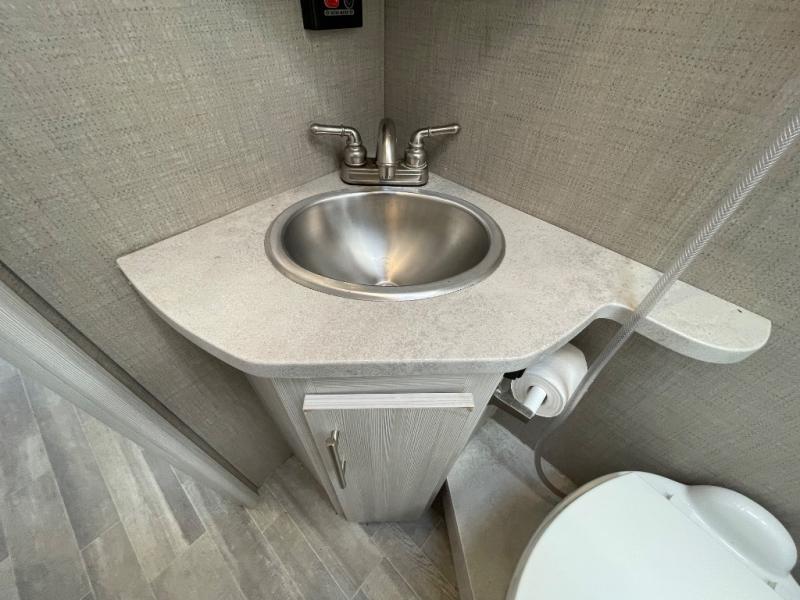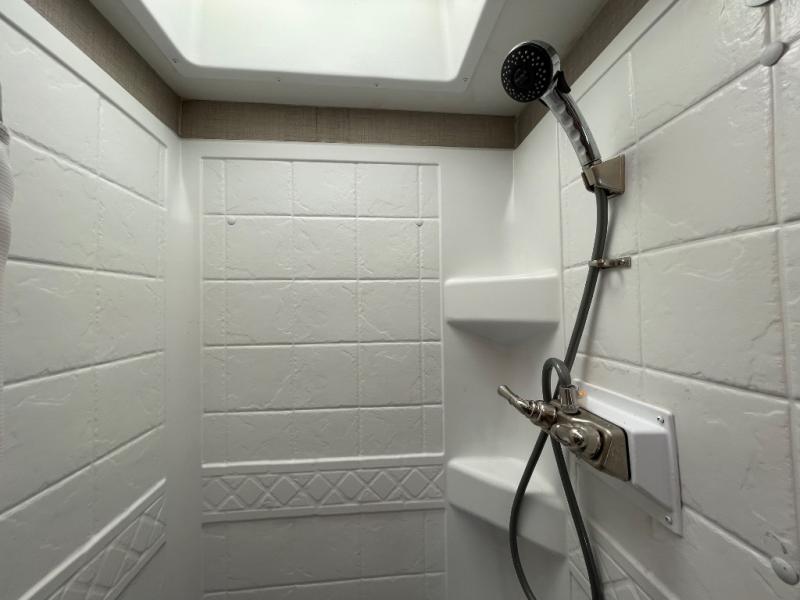 You can tour a local winery or trek up north to find a cozy and secluded camping spot with this Compass AWD Class B+ gas motorhome! All of your needs will be met with the excellent features and amenities included on this coach, like the full bathroom complete with a 24" x 32" shower, three robe hooks, a shower skylight, a foot-flush toilet, and a power bath vent. The kitchen is ready to help you make mobile meals, and the 68" Dream Dinette is the perfect place for eating those meals or playing a game later on. At the dinette table top, you'll find a wireless phone charger with USB plug so that you can charge your phones. There is a privacy curtain that sections off the flip-up RV queen bed, and you'll also find a 32" TV in the bedroom. The second 32" TV is located out in the main living area for everyone else to watch.