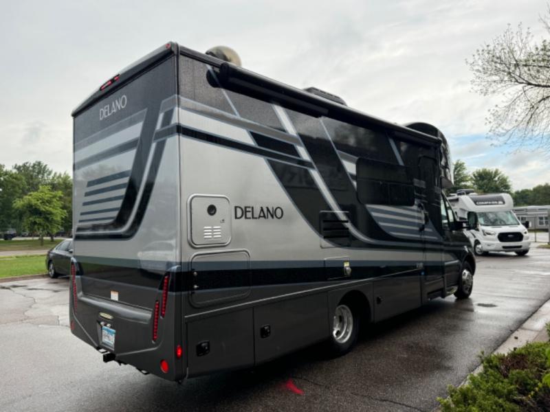 You can go just about anywhere you heart desires in this spacious coach for five. The cab-over bunk will be a big plus with the little ones, and you'll enjoy the Murphy bed when the 67" sofa isn't being used. Whip up a meal on the two burner gas cooktop, or use the convection microwave, and the 70" Dream Dinette will provide a space to dine at. There is even dinette footrests for added comfort! This model includes a full rear bath with a shower skylight, a power bath vent to keep everything fresh, and a wardrobe/linen closet for clean towels. Start exploring today in this Delano Sprinter coach!