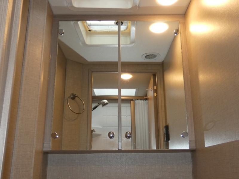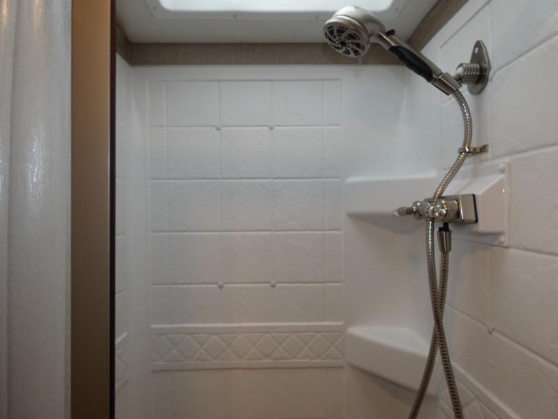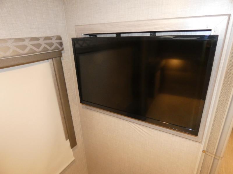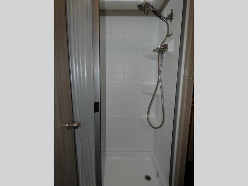 You'll enjoy every minute spent in this double slide out coach that can sleep up to five each night. The main living area is made spacious thanks to the dinette slide out, and there is theater seating with footrests across from the 39" LED TV to watch your favorite shows. A cab-over bunk features a built-in skylight for star gazing at night, and the rear private bedroom will feel just like home. Here, you'll enjoy the flip-up full-size bed with cushioned seating underneath within the slide out, plus a 32" LED TV and a wardrobe to keep your things tidy. There is a private toile and sink across the hall from the 24" x 32" shower so two people can freshen up at once. How convenient! In the morning, prepare breakfast on the two burner gas cooktop, and the flip-up countertop will provide more space to cut fresh fruit!