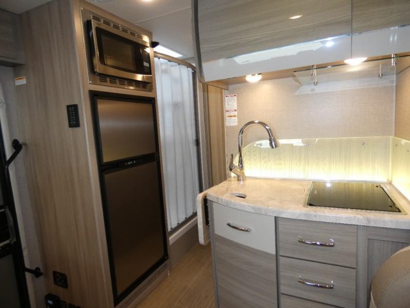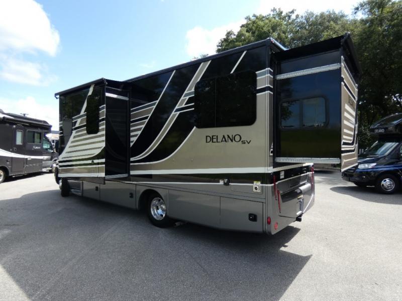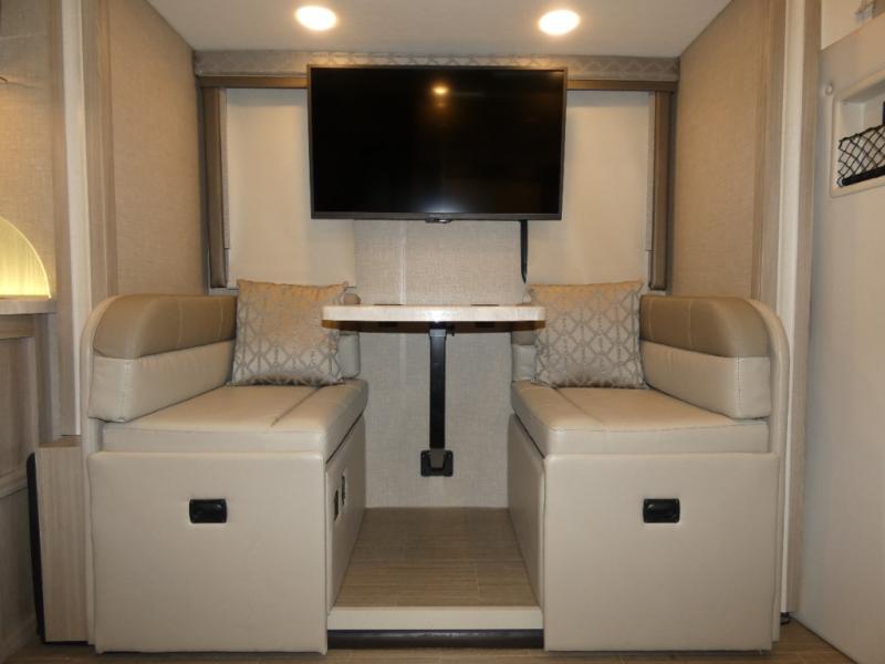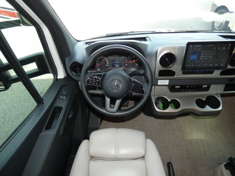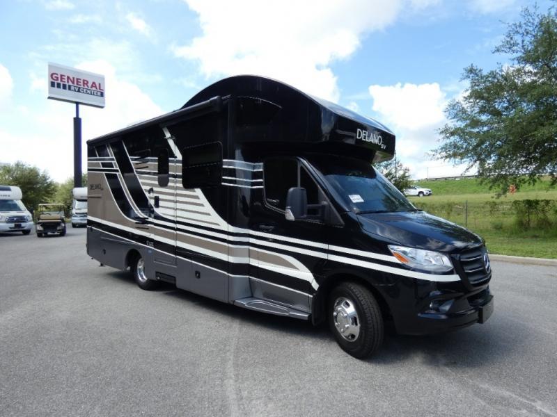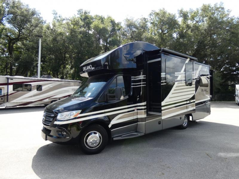 Luxury comes standard in the Delano Sprinter Class C diesel motorhomes by Thor Motor Coach. You will find it so easy to maneuver the road with the Mercedes-Benz Safety Package that includes features such as active braking assist and distance regulator distronic plus that will help keep a safe distance from vehicles in front of you. The frameless windows and the full-body paint package with gel coated sidewalls is sure to be eye-catching, plus there is invisible front paint protection for added defense against the elements. Each model includes the Rapid Camp+ multiplex wiring control system that will make set-up easier than ever, a Winegard ConnecT 2.0 WiFi/4G/TV antenna to keep you connected to the outside world, and a whole coach water filtration system for fresh H2O day or night. The Delano Sprinter also includes many interior comforts, like the easy-to-clean residential vinyl flooring, the high-gloss Euro-style cabinetry, and the Leatherette furniture!