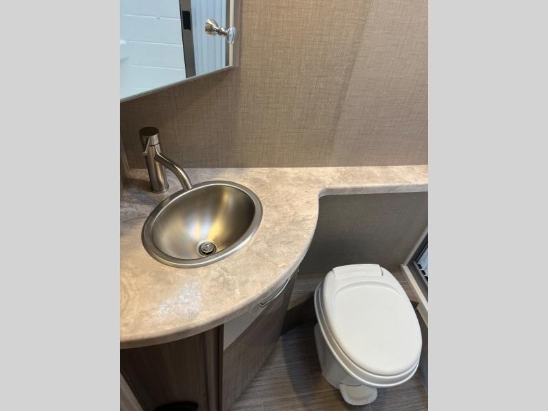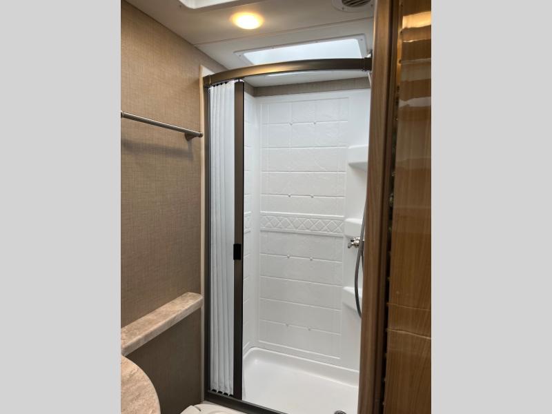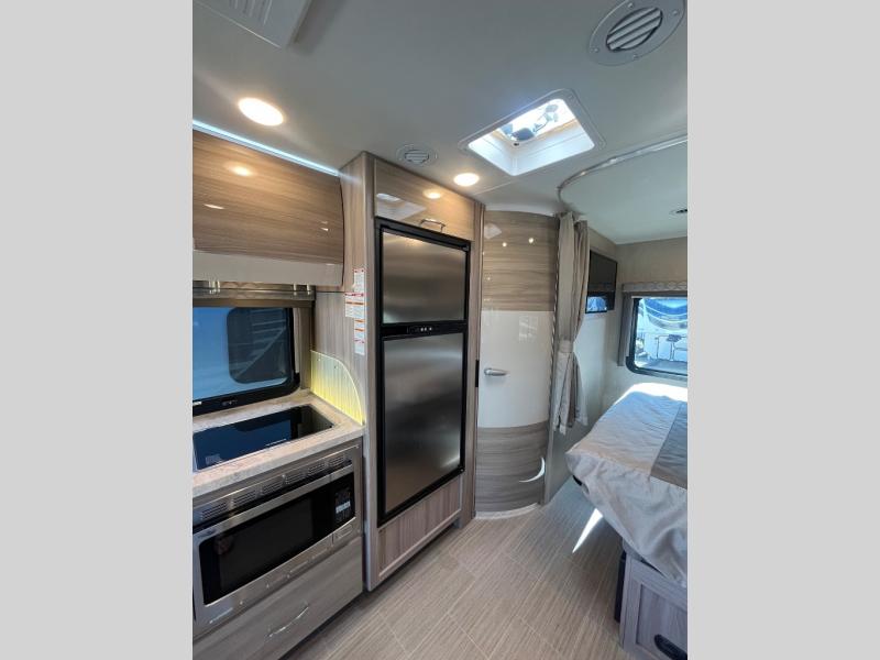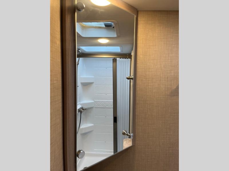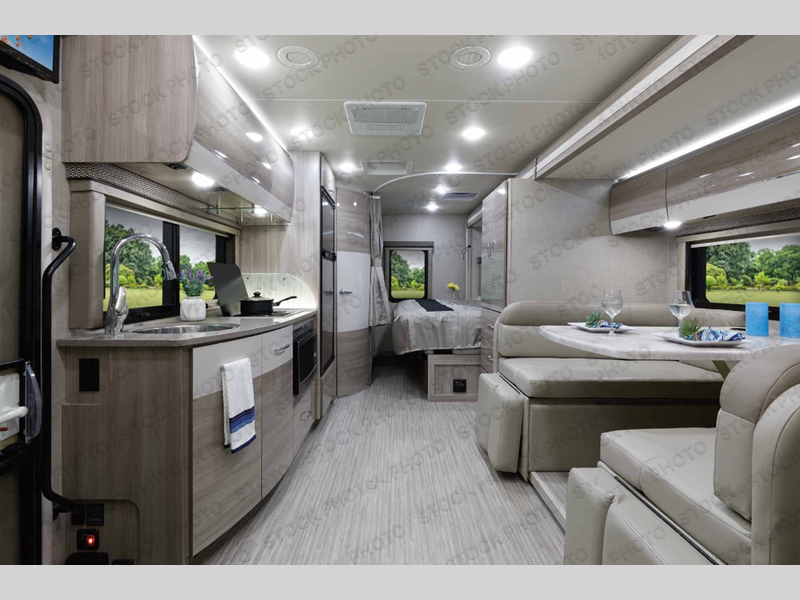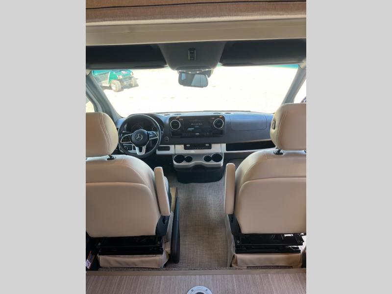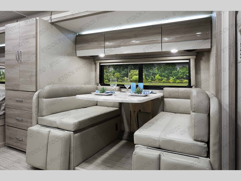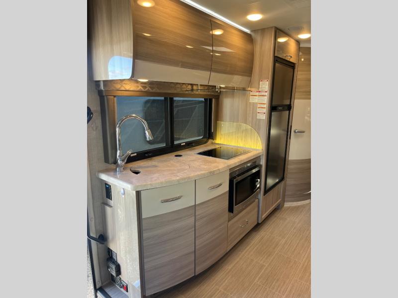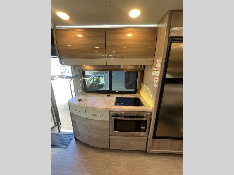 Luxury comes standard in the Delano Sprinter Class C diesel motorhomes by Thor Motor Coach. You will find it so easy to maneuver the road with the Mercedes-Benz Safety Package that includes features such as active braking assist and distance regulator distronic plus that will help keep a safe distance from vehicles in front of you. The frameless windows and the full-body paint package with gel coated sidewalls is sure to be eye-catching, plus there is invisible front paint protection for added defense against the elements. Each model includes the Rapid Camp+ multiplex wiring control system that will make set-up easier than ever, a Winegard ConnecT 2.0 WiFi/4G/TV antenna to keep you connected to the outside world, and a whole coach water filtration system for fresh H2O day or night. The Delano Sprinter also includes many interior comforts, like the easy-to-clean residential vinyl flooring, the high-gloss Euro-style cabinetry, and the Leatherette furniture!