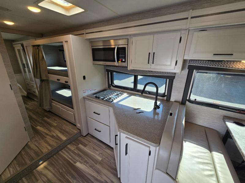 With any Four Winds Class C gas motorhome, you can travel in a trustworthy Ford E-Series chassis with 350HP. Each is built with welded sidewall cage construction and a welded tubular aluminum roof, a one-piece fiberglass cap, and includes a slick fiberglass exterior with graphics package for style and years of enjoyment on the open road. Inside, you will enjoy the well-equipped kitchen, the spacious bathroom, the sleeping accommodations and the Winegard ConnecT 2.0 WiFi/4G/TV antenna that allows you to stay connected. With several floorplans to choose from and options to add, you will surely find one that fits your family's needs or your friend's approval. Choose today!