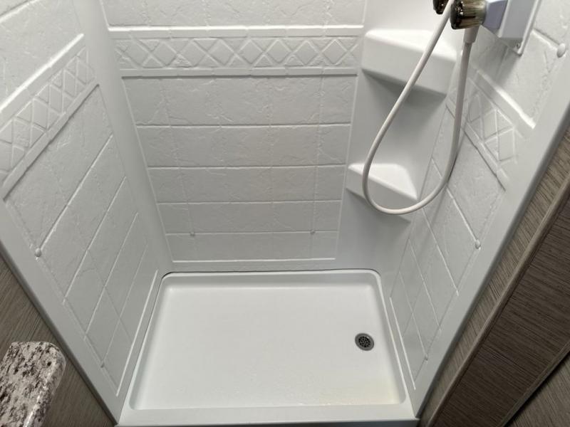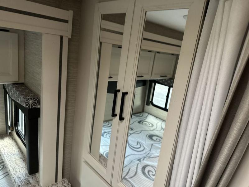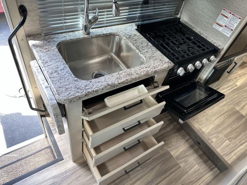 Get ready to travel for long periods of time in this coach that offers sleeping space for five when you utilize the rear corner queen bed, the cab over bunk and the dream dinette. You and your friends will enjoy staying anywhere with the views out of the windows, the full bathroom only a few steps away and the kitchen amenities to feed everyone plus some. The chef will love the galley kitchen and being able to watch the 39" TV with swivel while cooking. You might even like to add an option or two such as an exterior 32" TV to enjoy while relaxing outside under the power awning with integrated LED lighting to enjoy at night.
