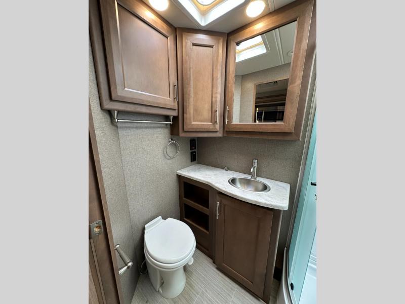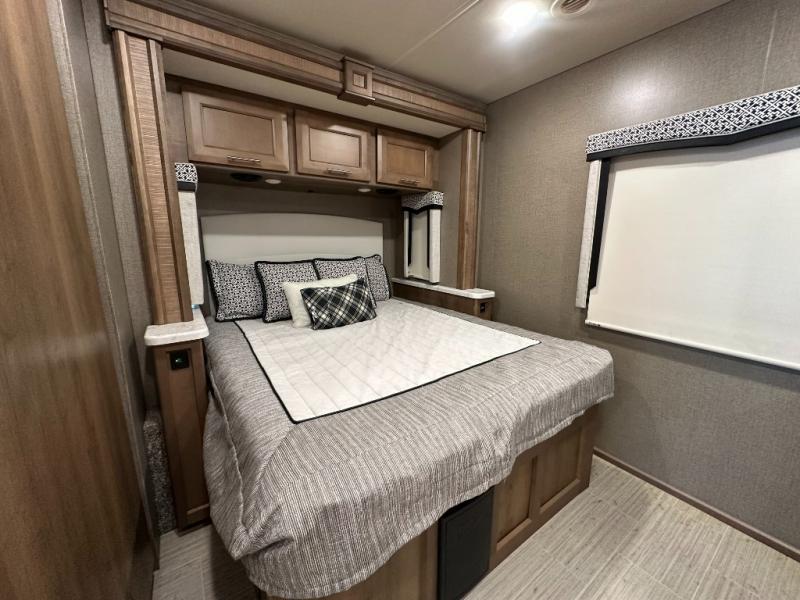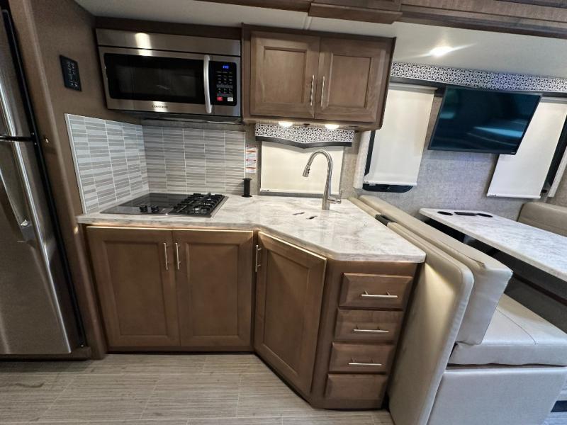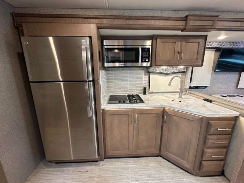 Make your journeys fantastic with the Thor Motor Coach Magnitude Super C diesel motorhome! The powered sky view shade above the cab area will let you feel the sun's rays while you travel down the road, and the cab has some additional features that will make traveling more enjoyable, like the FordPass Connect 4G Wi-Fi modem, rearview mirror with backup monitor, AM/FM and SiriusXM radio, and 8" color LCD touchscreen. The 7' interior ceiling will accommodate passengers of any height, and the pop-up outlet in the kitchen will give you a convenient location to charge devices. The dual roof air conditioners will keep you cool on the hottest days in summer, and the Onan RV diesel generator will power your coach and all of its electrical functions. You will also find a Winegard® ConnecT™ Wi-Fi extender + 4G and a Bluetooth coach radio system in the bedroom for some extra entertainment.