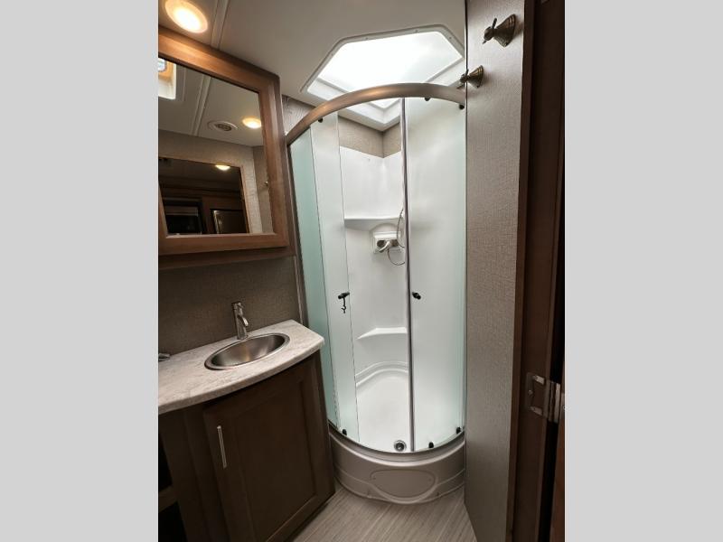 Start planning your trip across the states in this Magnitude Super C diesel motorhome that can comfortably sleep six people each night! This coach has four-wheel drive to take you anywhere you want to go. Some of your guests will love the 59" x 80" bunk above the cab, and you will appreciate having your own private bedroom with a 32" TV and an RV queen bed slide. Once you've reached your destination and set up camp, you can easily get cleaned up in the full bath, and then head to the kitchen to prepare lunch on the two-burner gas range with single induction cooktop or in the convection microwave oven. After a long day of traveling, relax on the theater seating and watch a movie on the 39" LED TV.