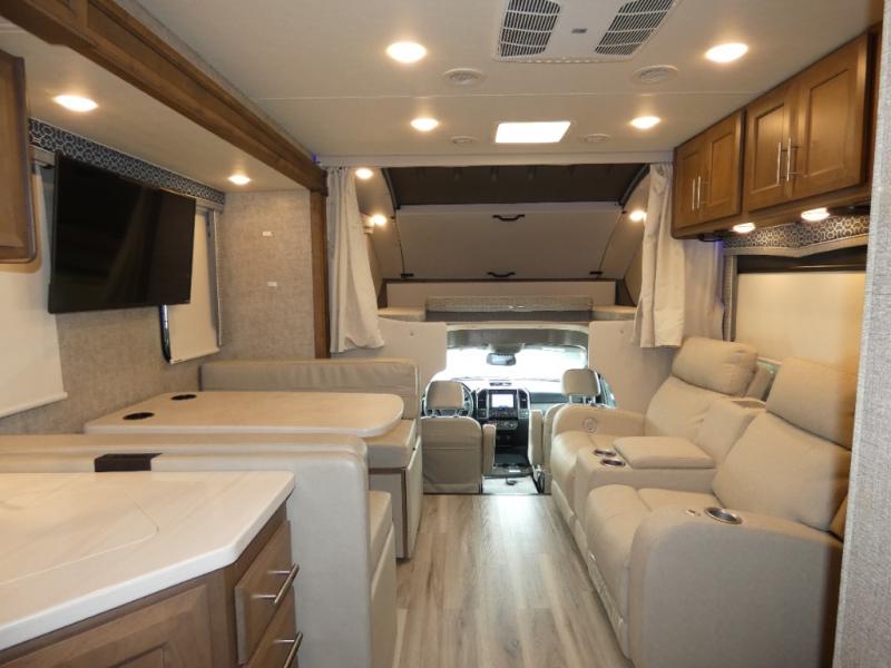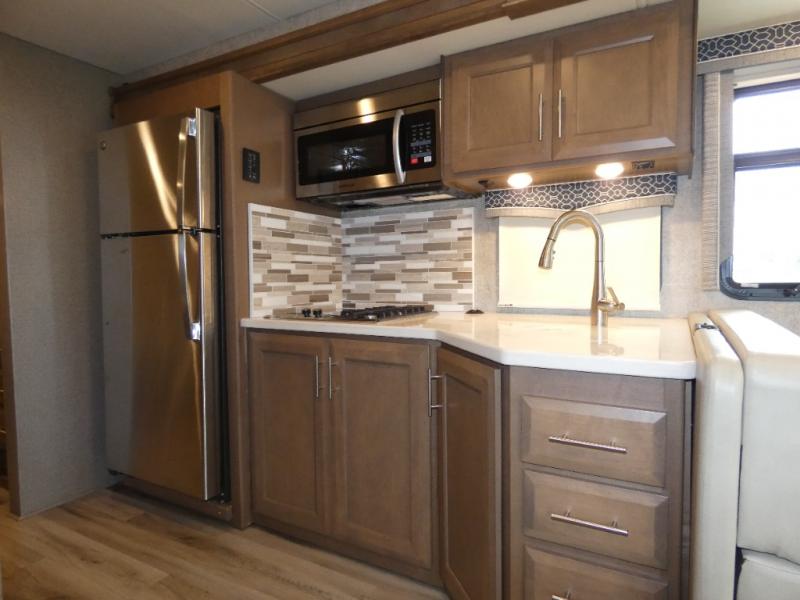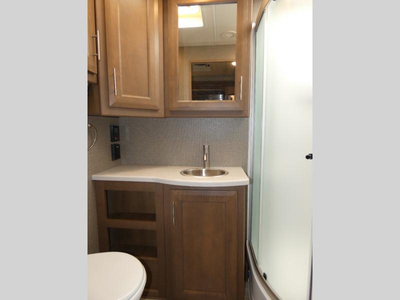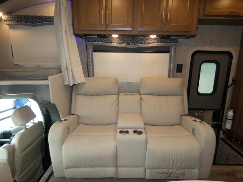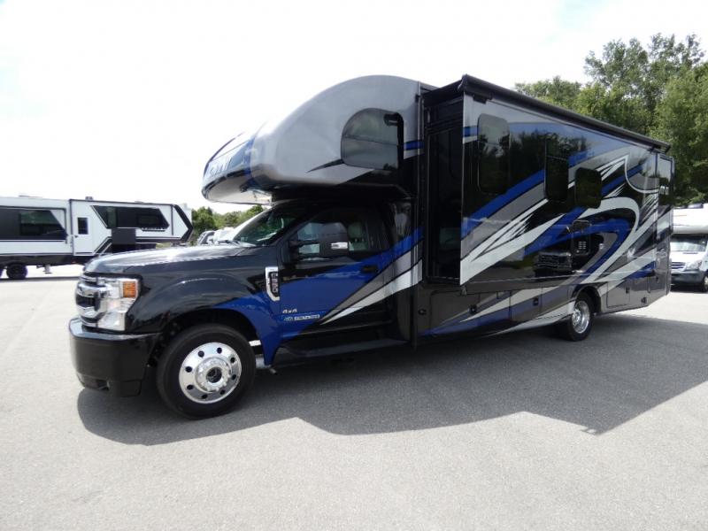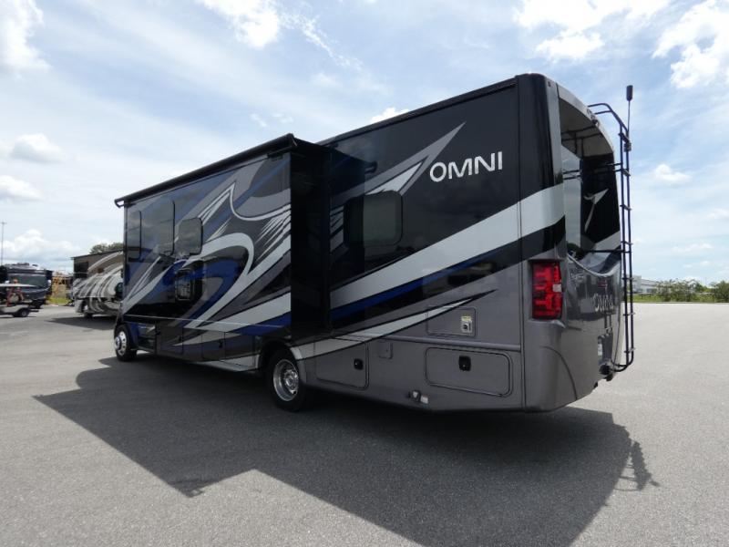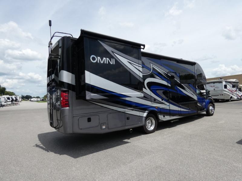 The Omni Super C diesel motorhome by Thor Motor Coach starts with a durable welded tubular steel floor, vacu-bond laminated roof, walls, and floors with block foam insulation, and a full-body paint package with gel-coat sidewalls. Each model includes either a F550 or F600 Power Stroke 4 x 4 Turbo Diesel engine that will allow you to maneuver tougher terrain when the adventure calls for it. The cockpit is every captain's dream with its power adjustable driver's seat, side view and back-up camera system, heated remote exterior mirrors, and more. You can control all of your coach's functions with the RapidCamp+ multiplex wiring control system, and the Winegard ConnecT Wi-Fi extender with 4G will allow you to say in touch with the outside world as you travel. Each model includes residential linoleum throughout, Leatherette furniture, solid surface countertops in the kitchen, and a glass shower door for that added touch of luxury. Come see all the other great features the Omni Super C diesel motorhome has to offer!