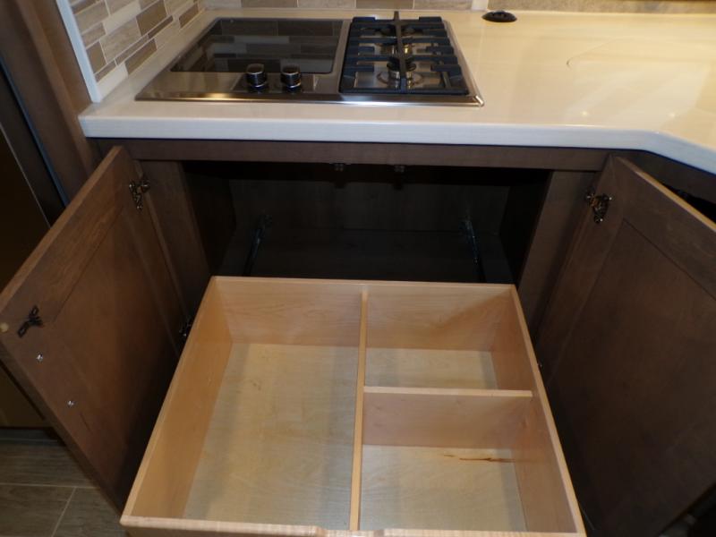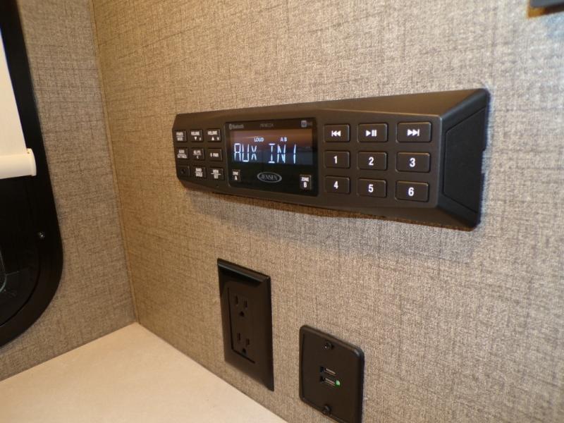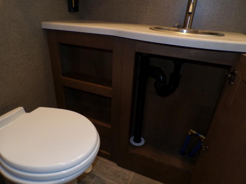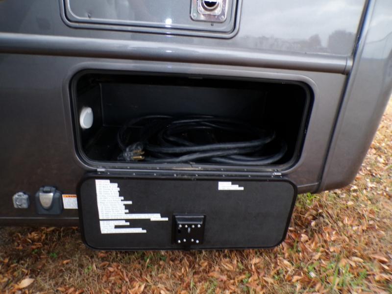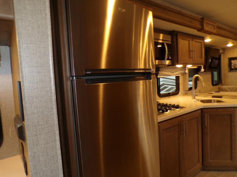 If you've been wanting to travel the country in style, now is the time with this motorhome that can sleep five people each night. The 39" living room TV is directly across from the theater seating for easy viewing, plus there is a 32" bedroom TV and an 32" exterior TV for all your entertainment needs. The Dream Dinette will be the perfect place to enjoy breakfast each morning as you plan out your day, or you may just want to sit at the picnic table under the 14' power awning. This model includes a mid-ship full bath with a shower skylight that will not only provide more natural light, but will give you more head room as you wash up. The rear private bedroom will feel just like home with its queen bed slide out, plus there is a wardrobe to keep your clothes tidy!