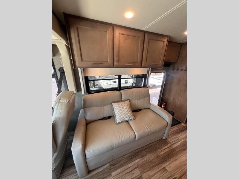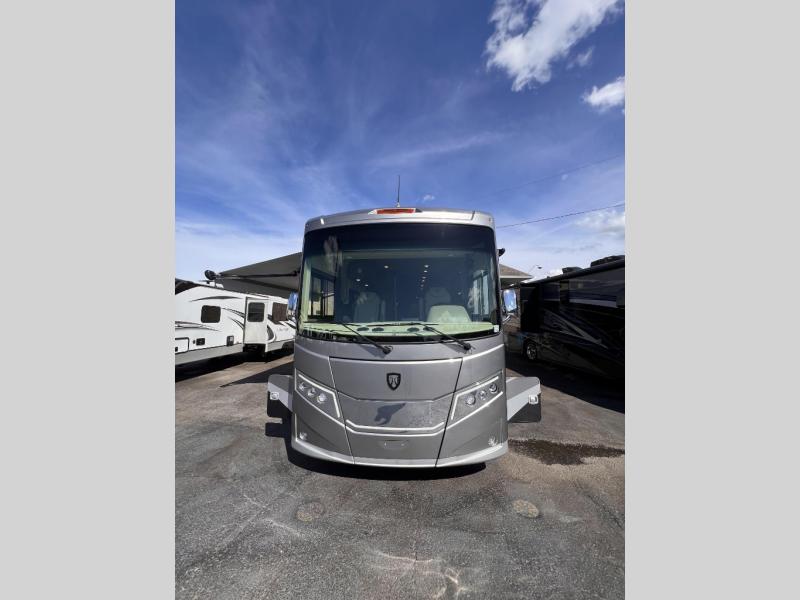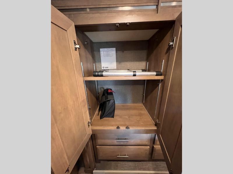 Each journey you take with a Palazzo Class A diesel motorhome by Thor Motor Coach is made smooth thanks to the Air-Ride suspension, the Sachs shock absorbers, and the Atlas foundation. You'll enjoy hassle-free set up thanks to the Rapid Camp + multiplex wiring control system, and there is a Winegard ConnecT 2.0 WiFi/4G/TV antenna to keep you connected to the outside world as you're away from home. The exterior of the Palazzo features lighted storage compartments and a basement pass-through, a 40" LED TV, and invisible front paint protection to withstand the elements. You will fall in love with the interior that includes Studio Collection cabinetry, luxury vinyl tile flooring, leatherette furniture, solid surface countertops, plus many more comforts!