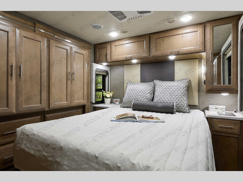 Make your trip across the country comfortable in this Class A diesel motorhome. Once you park, the swivel captain's seats can become a part of the living area, plus there are 68" inclining theater seats across from the 40" LED TV for your comfort. Once lunch is prepared on the electric induction cooktop, you can dine together at the Dream Dinette. You'll be pleased to find a residential refrigerator in the kitchen, along with a pantry and a large double bowl stainless steel sink. The full bath includes everything you need to stay fresh each day, and the rear bedroom will feel just like home. Here, you'll enjoy a Tilt-A-View inclining queen bed, a slide out wardrobe, plus a second wardrobe, and a 32" TV. If you love spending time outdoors, then this model has you covered with an 18' power awning with LED lights and an exterior 39" TV!