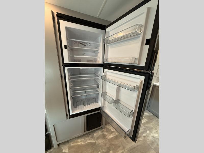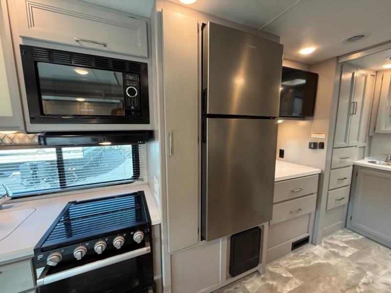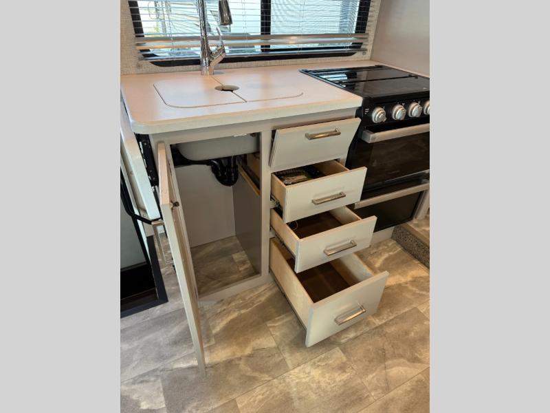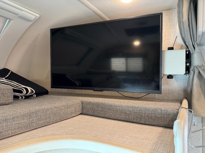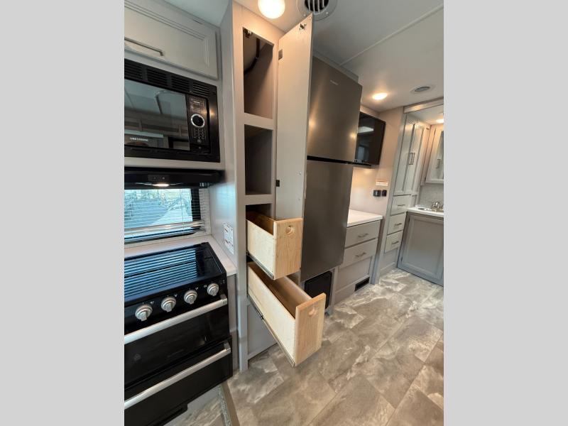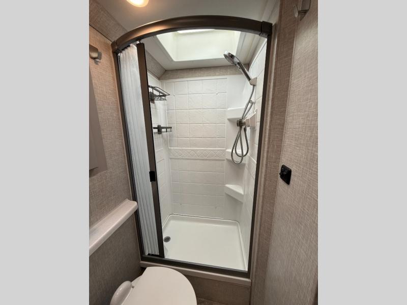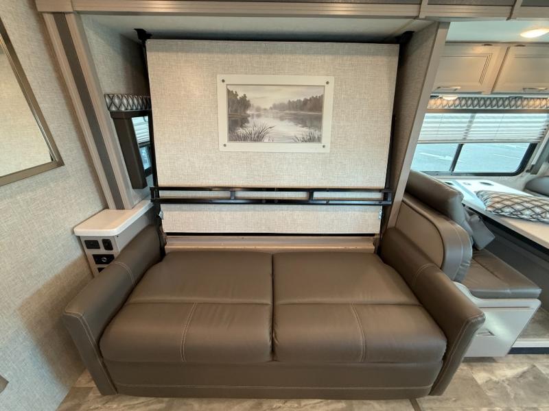 Whether you travel with your family or your favorite person, this RV is versatile and comfortable during the daytime and at night! The slide out offers a sofa, a 60" x 74" Murphy bed and a privacy curtain allowing you to relax while lounging during the day, and sleep at night after easily setting up the bed, plus the Dream dinette offers gaming and dining as well as sleeping space. Your kids or guests can sleep on the cab-over bunk also. The galley kitchen gives you everything you need to make warm meals, and the pantry as well as the double door refrigerator allow you to keep your snacks, ingredients, beverages and leftovers. Everyone can watch the 39" TV with swivel while taking turns getting cleaned up for bedtime in the rear full bathroom with a space saving sliding door. There are many more features to enjoy such as a USB power charging center for electronics in the bedroom, kitchen accent countertop lights and waste basket, and options to choose from such as a Chevy chassis option, and/or adding an exterior 32" TV.